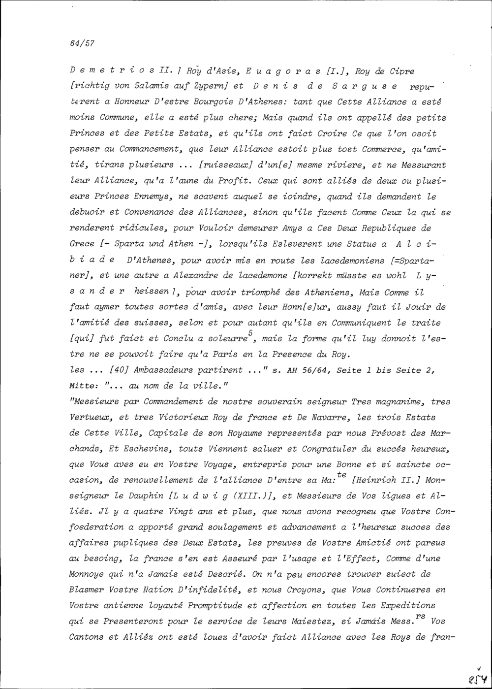 Bericht einer Reise der Gesandten der Zwölf Orte und der Zugewandten Orte nach Paris in Sachen neue Allianz mit Heinrich IV., König von Frankreich