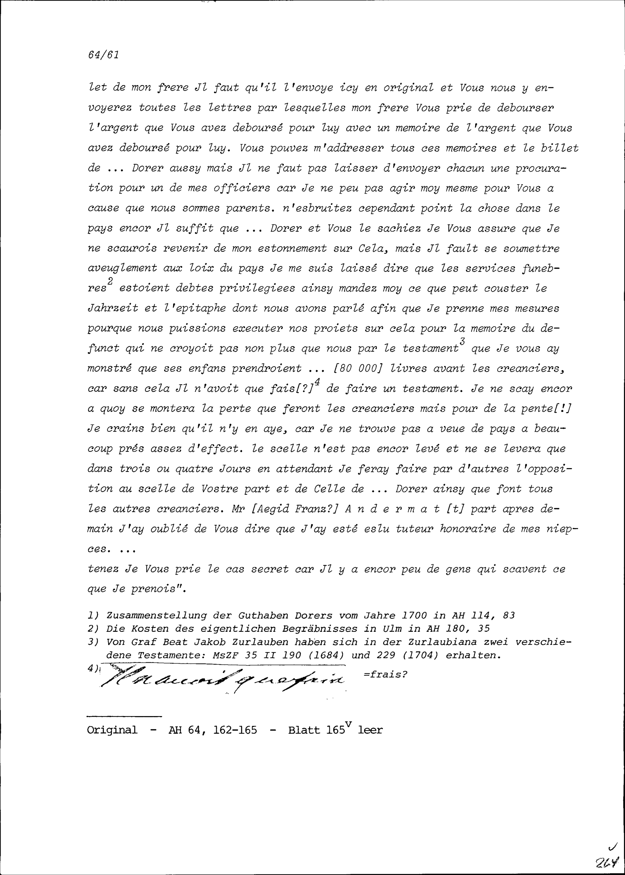 Schreiben von Beat Heinrich Josef Zurlauben, Brigadier, an Beat Jakob II. Zurlauben, Ammann