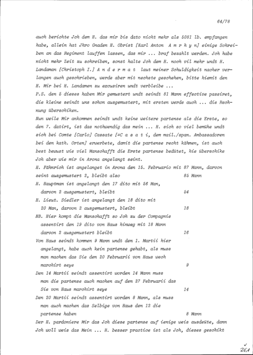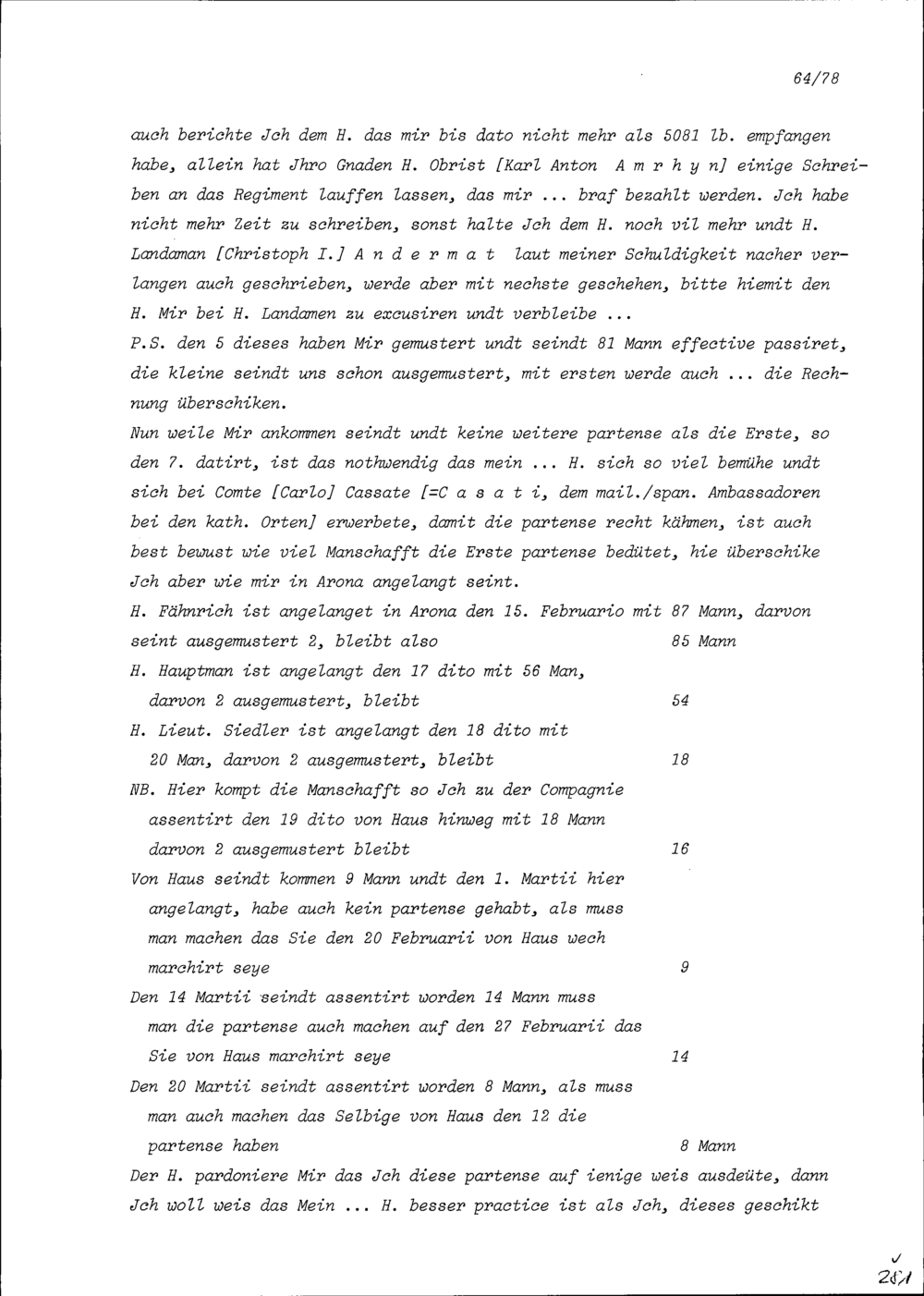 Schreiben von Johann Josef Sidler, Leutnant, an Beat Jakob II. Zurlauben, Hauptm...