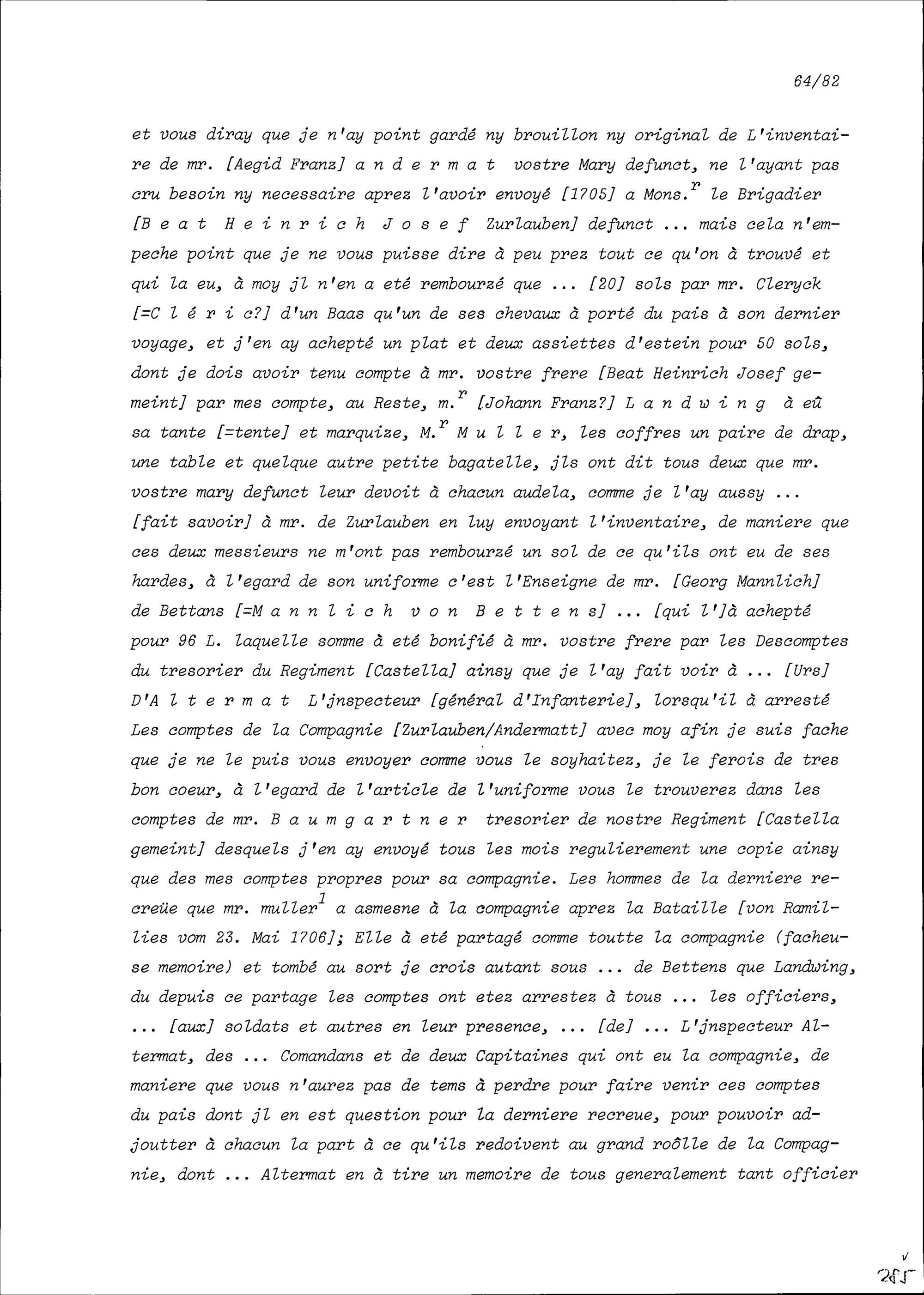 Schreiben von Wolfgang Anton Zumbach, Leutnant, an Maria Jakobea Zurlauben