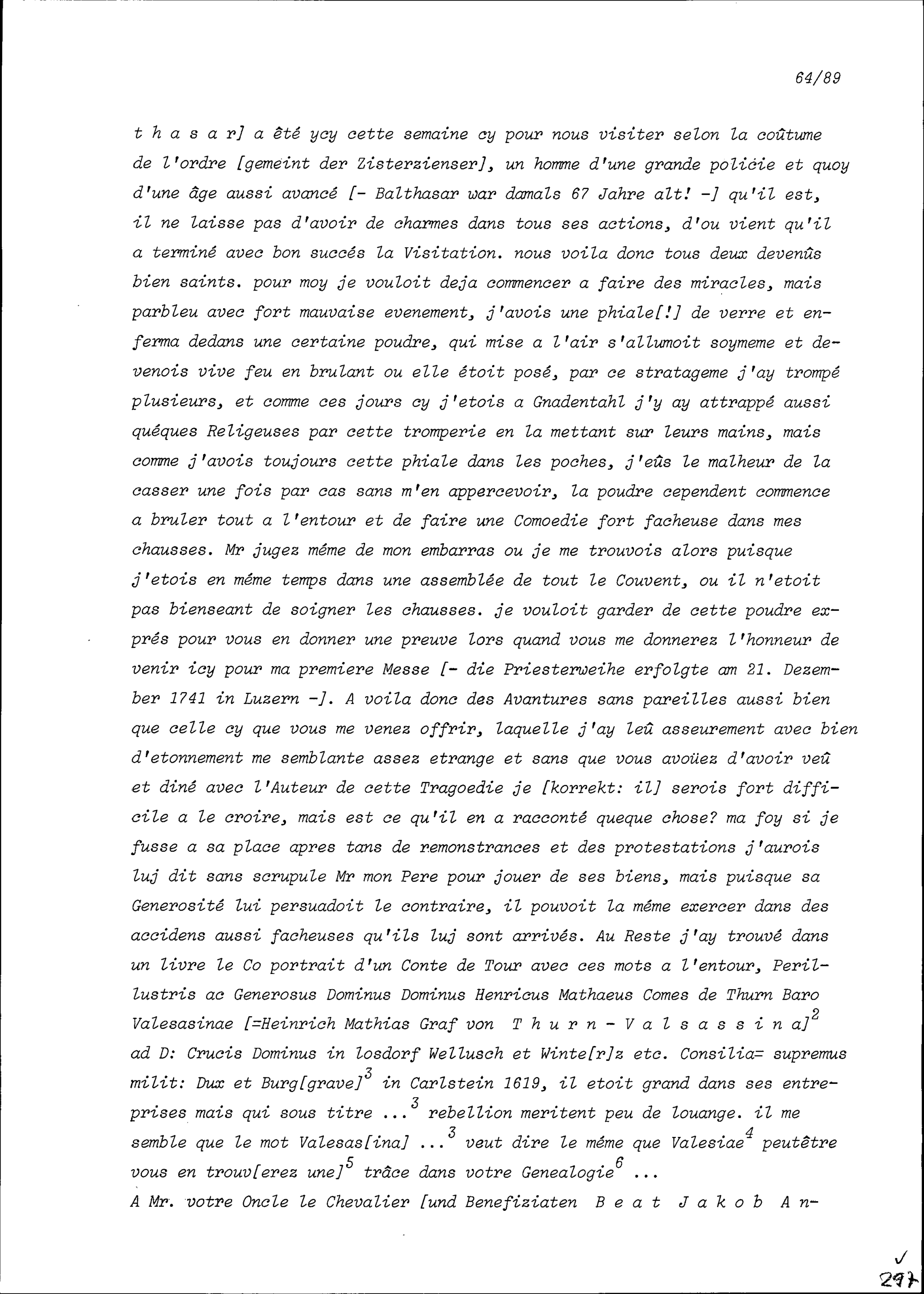 Schreiben von Gerold Brandenberg, Konventuale, an Beat Fidel Zurlauben, Zug