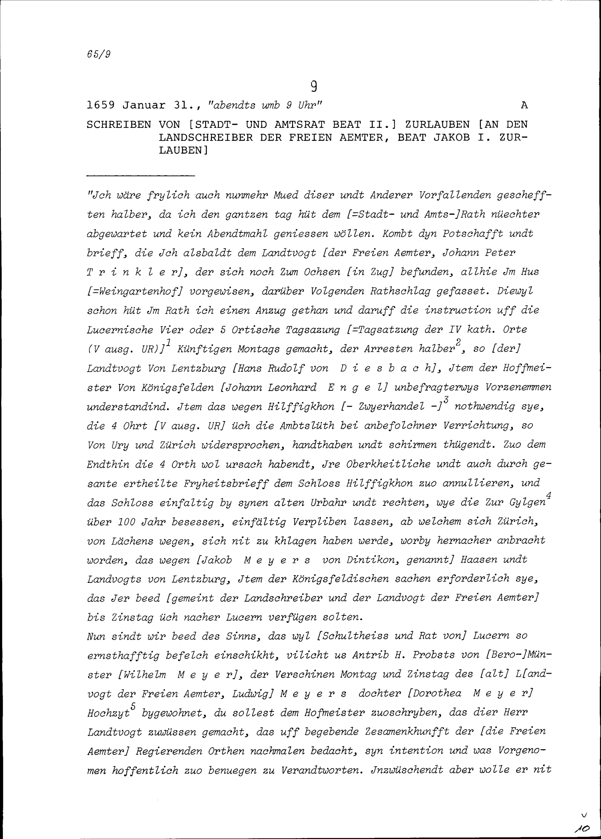 Schreiben von Beat II. Zurlauben, Stadt- und Amtrat, an Beat Jakob I. Zurlauben, Landschreiber der Freien Ämter
