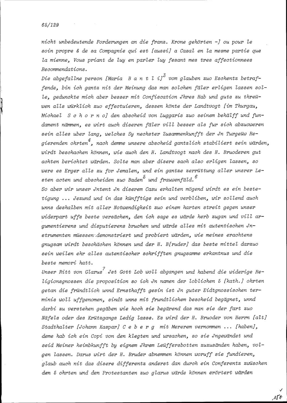Schreiben von Wolfgang Dietrich Theodor Reding, Landammann, an Beat II. Zurlauben, Altammann und Stadt- und Amtrat, an der Tagsatzung der Fünf Katholischen Orte vom 4. April 1652 in Luzern oder Zug