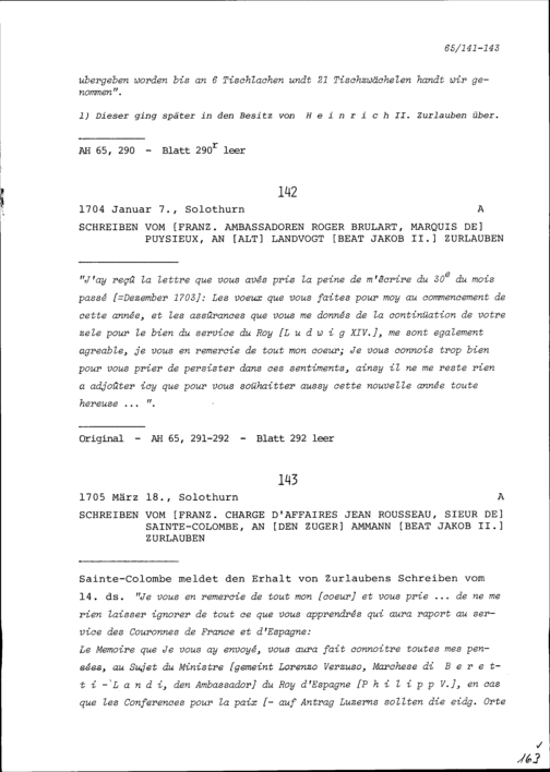 Schreiben von Roger Brûlart, Marquis de Puysieux, Ambassador von Frankreich, an Beat...