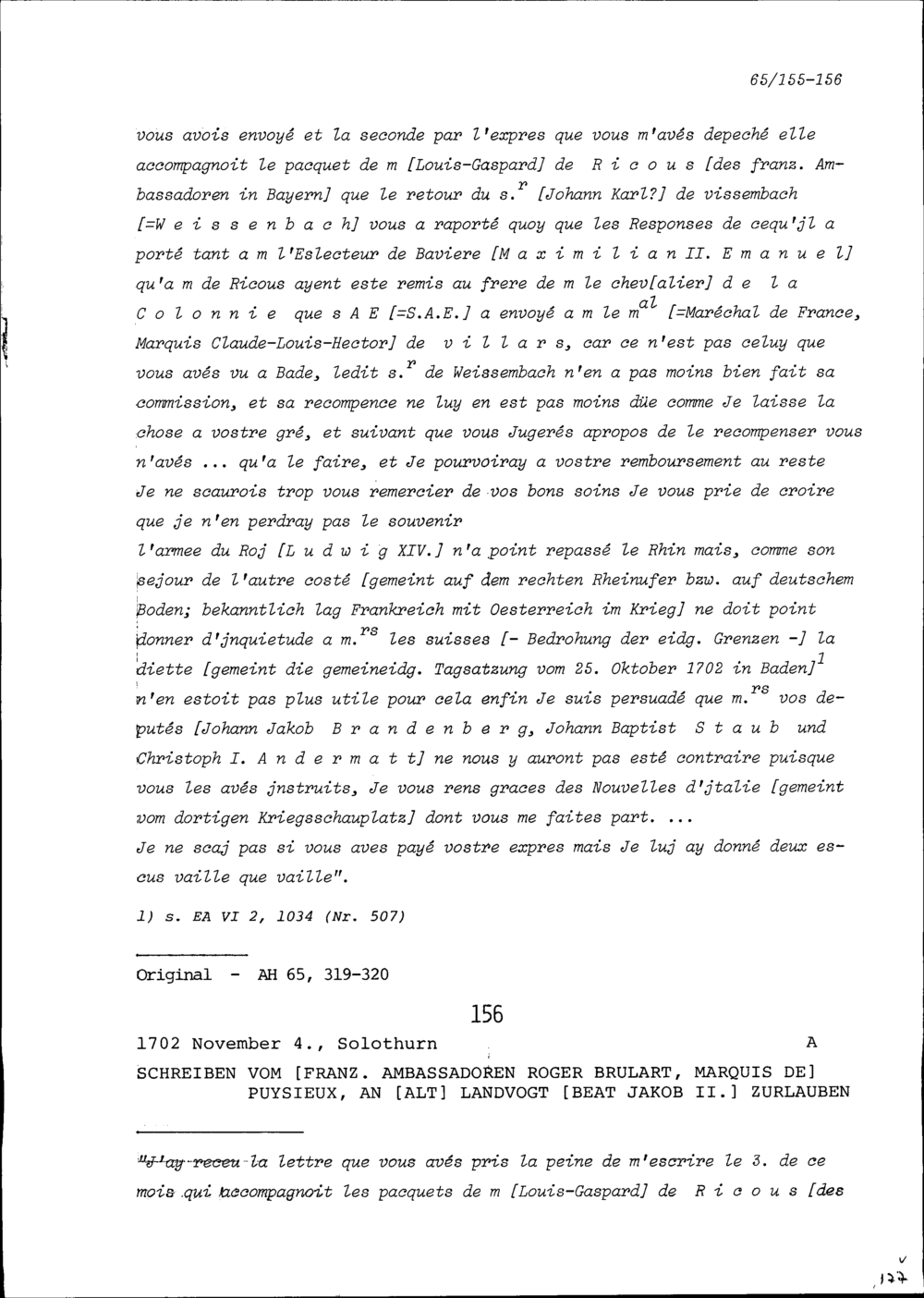 Schreiben von Roger Brûlart, Marquis de Puysieux, Ambassador von Frankreich, an Beat...