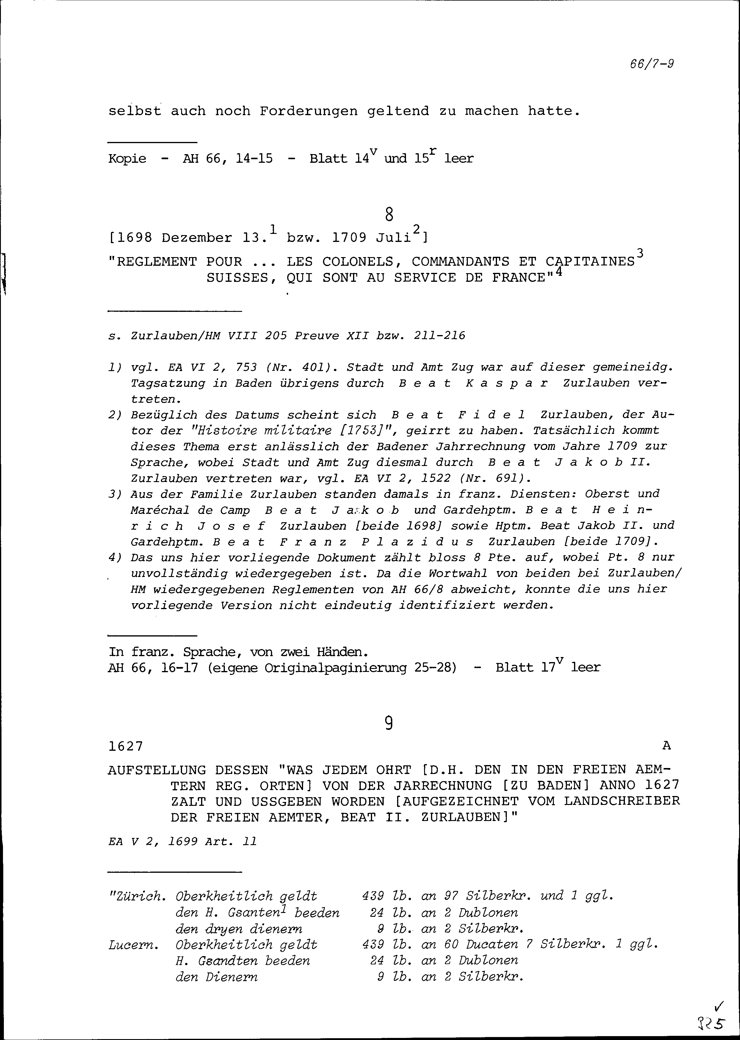 Reglement für die Schweizer Offiziere, Kommandanten und Hauptleute im Dienste Frankreichs