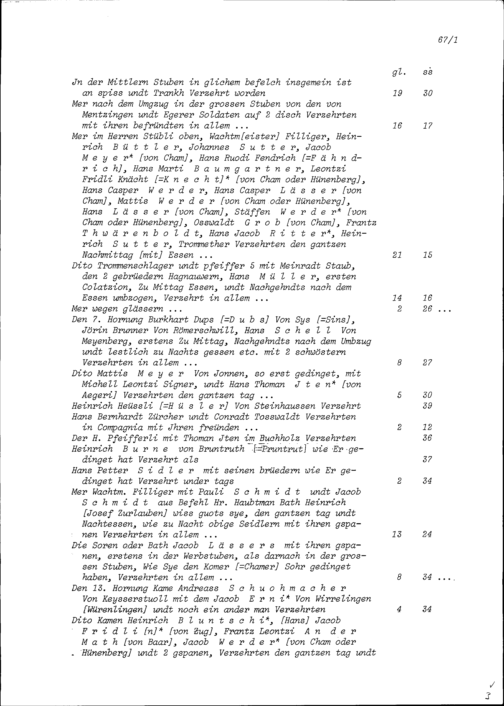 Rechnung von Joachim Merz, Ochsenwirt, zuhanden von Beat Jakob II. Zurlauben, Hauptmann, in Zusammenhang mit den in Zug vom 20. Januar bis 25. März getätigten Werbungen für die Gardekompanie Zurlauben in Frankreich