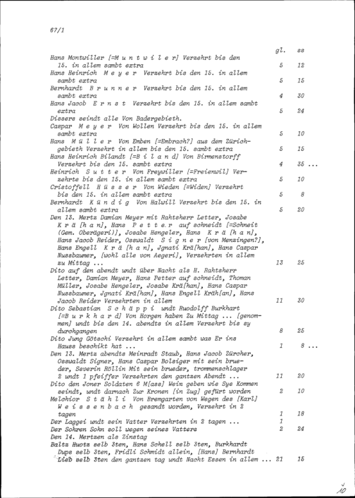 Rechnung von Joachim Merz, Ochsenwirt, zuhanden von Beat Jakob II. Zurlauben, Hauptmann, in Zusammenhang mit den in Zug vom 20. Januar bis 25. März getätigten Werbungen für die Gardekompanie Zurlauben in Frankreich