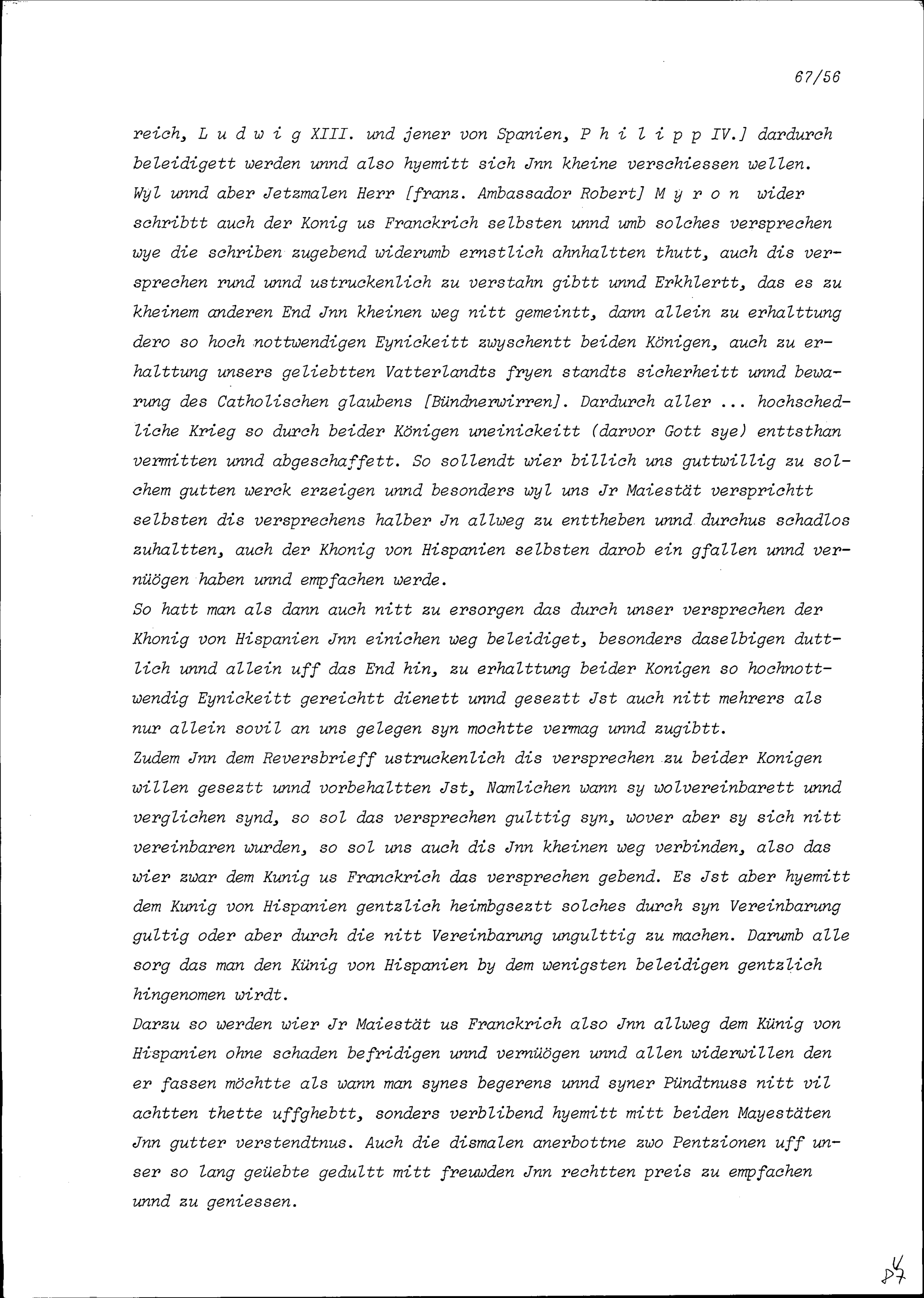 Bericht von Konrad III. Zurlauben, Stadt- und Amtrat Zug, bezüglich des Beitritts zum madrilenischen Traktat