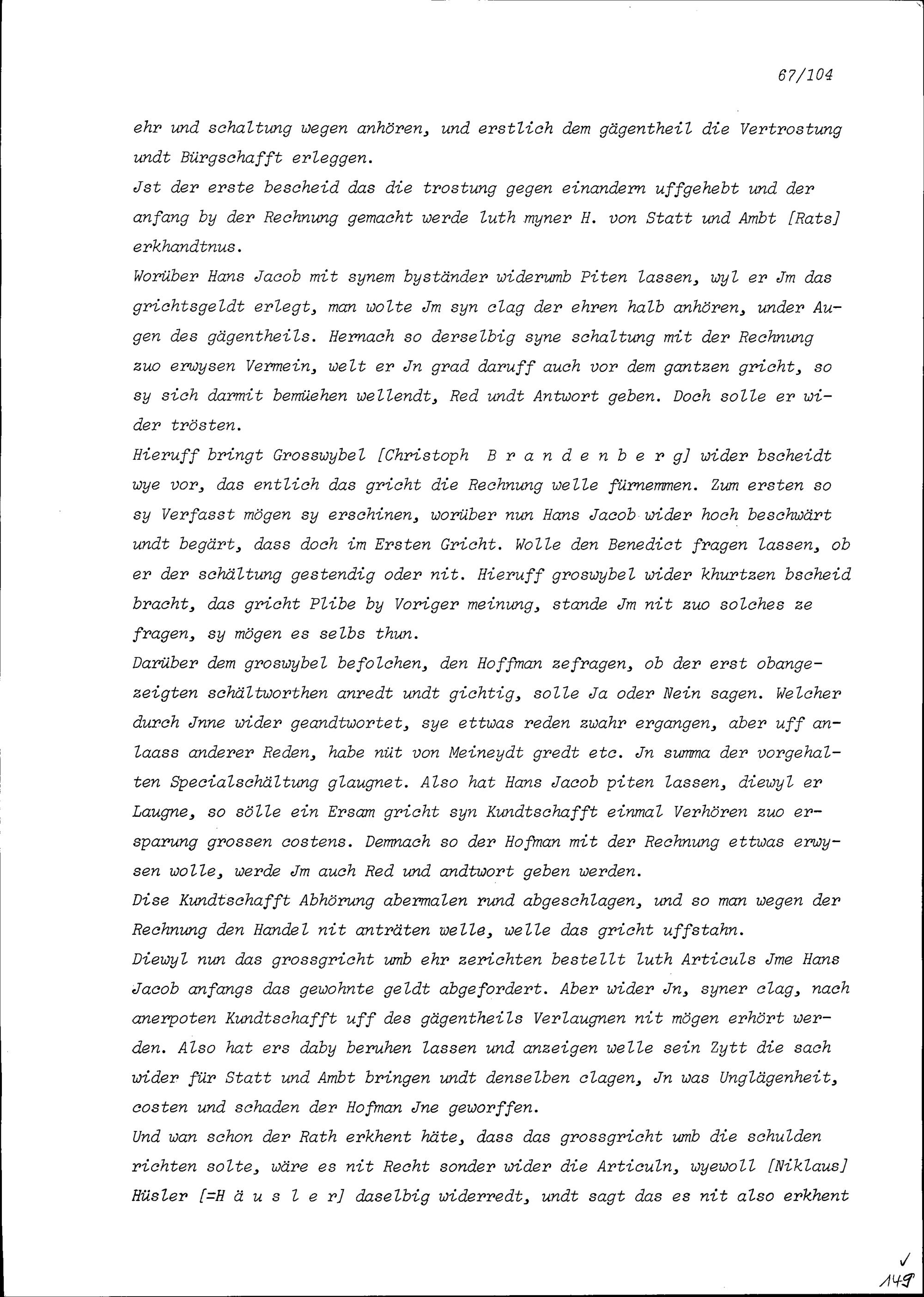 Notiz von Beat II. Zurlauben, Stadt- und Amtrat, über den Gerichtsfall zwischen Hans Jakob Iten und Benedikt Hoffmann
