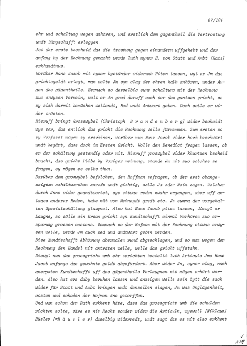 Notiz von Beat II. Zurlauben, Stadt- und Amtrat, über den Gerichtsfall zwischen Hans...