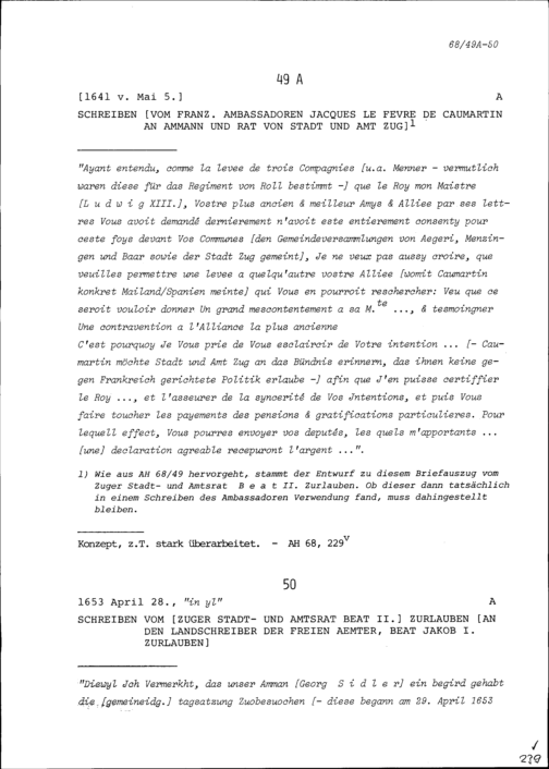 Schreiben von Jacques Le Fèvre de Caumartin, Ambassador von Frankreich, an Ammann und Rat von Stadt und Amt Zug