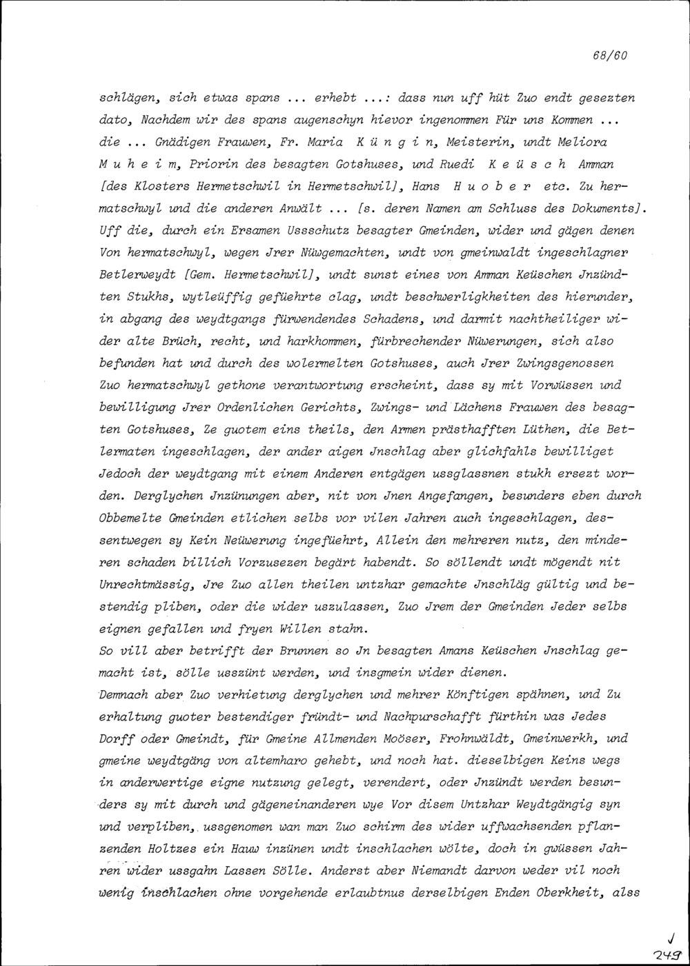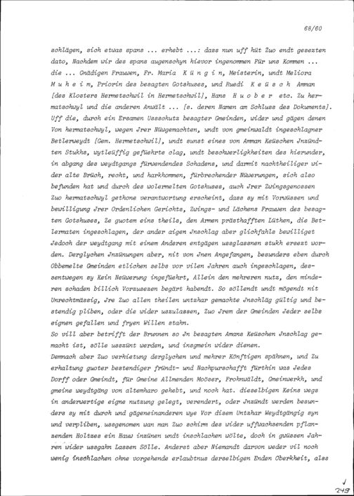 Entwurf eines Spruches betreffend Bünzen, Besenbüren, Waldhäusern und Waltenschwil mit dem Gotteshaus Hermetschwil samt Dorf und Gemeinde, verfasst von Beat II. Zurlauben, Landschreiber der Freien Ämter