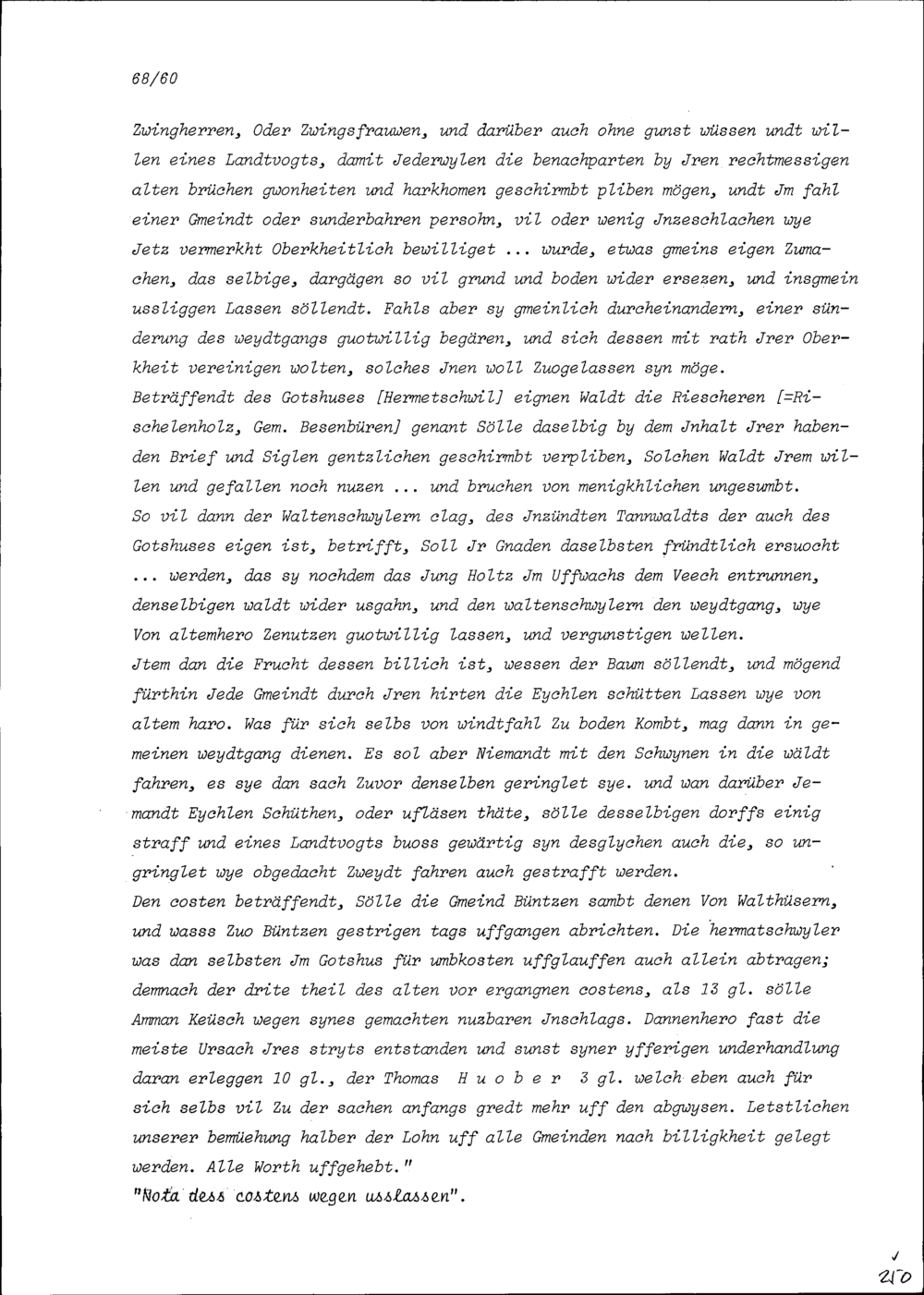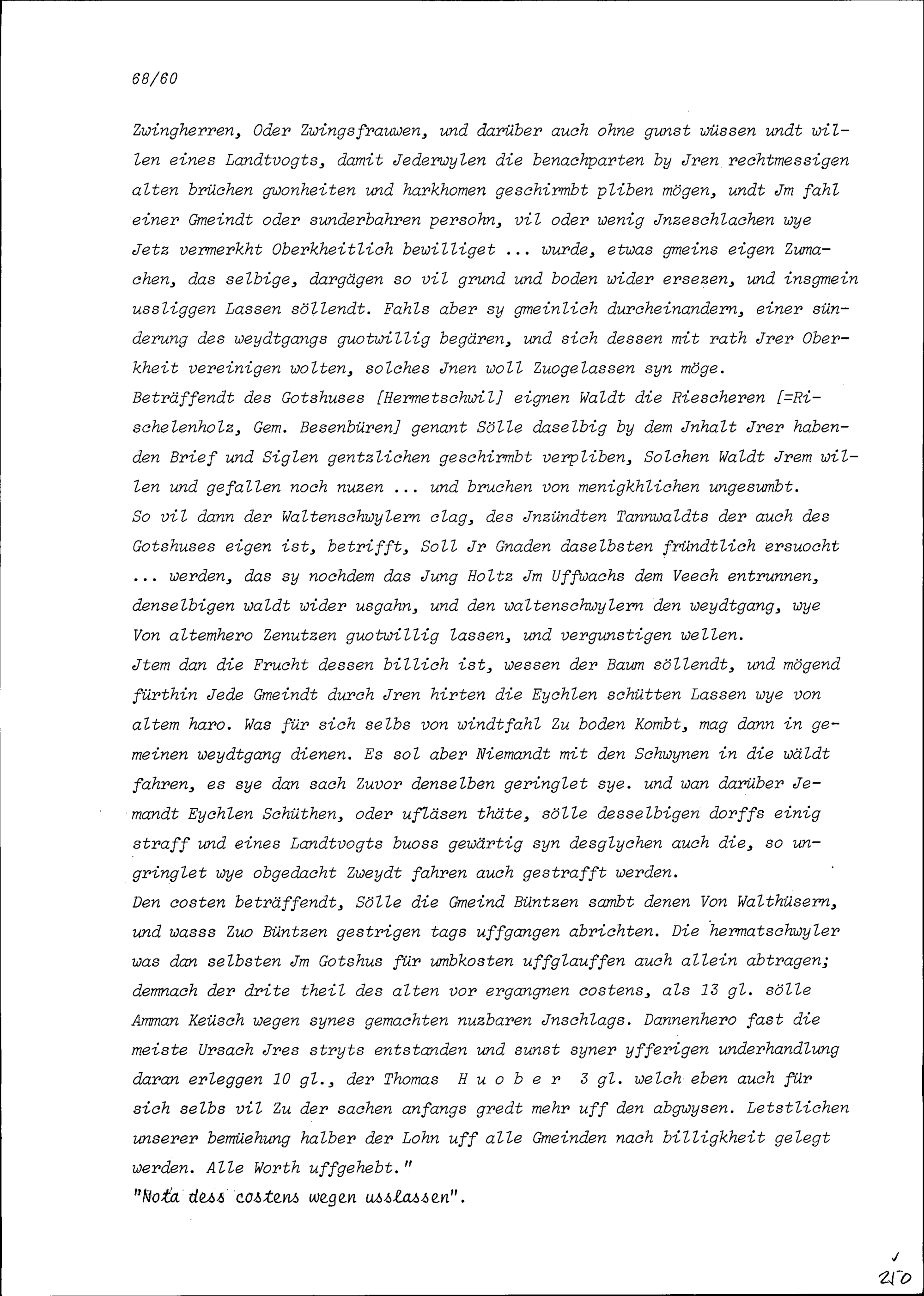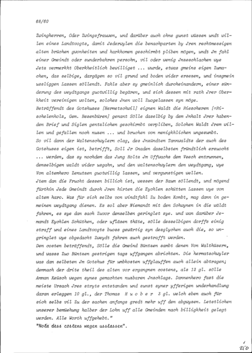 Entwurf eines Spruches betreffend Bünzen, Besenbüren, Waldhäusern und Waltenschwil mit dem Gotteshaus Hermetschwil samt Dorf und Gemeinde, verfasst von Beat II. Zurlauben, Landschreiber der Freien Ämter