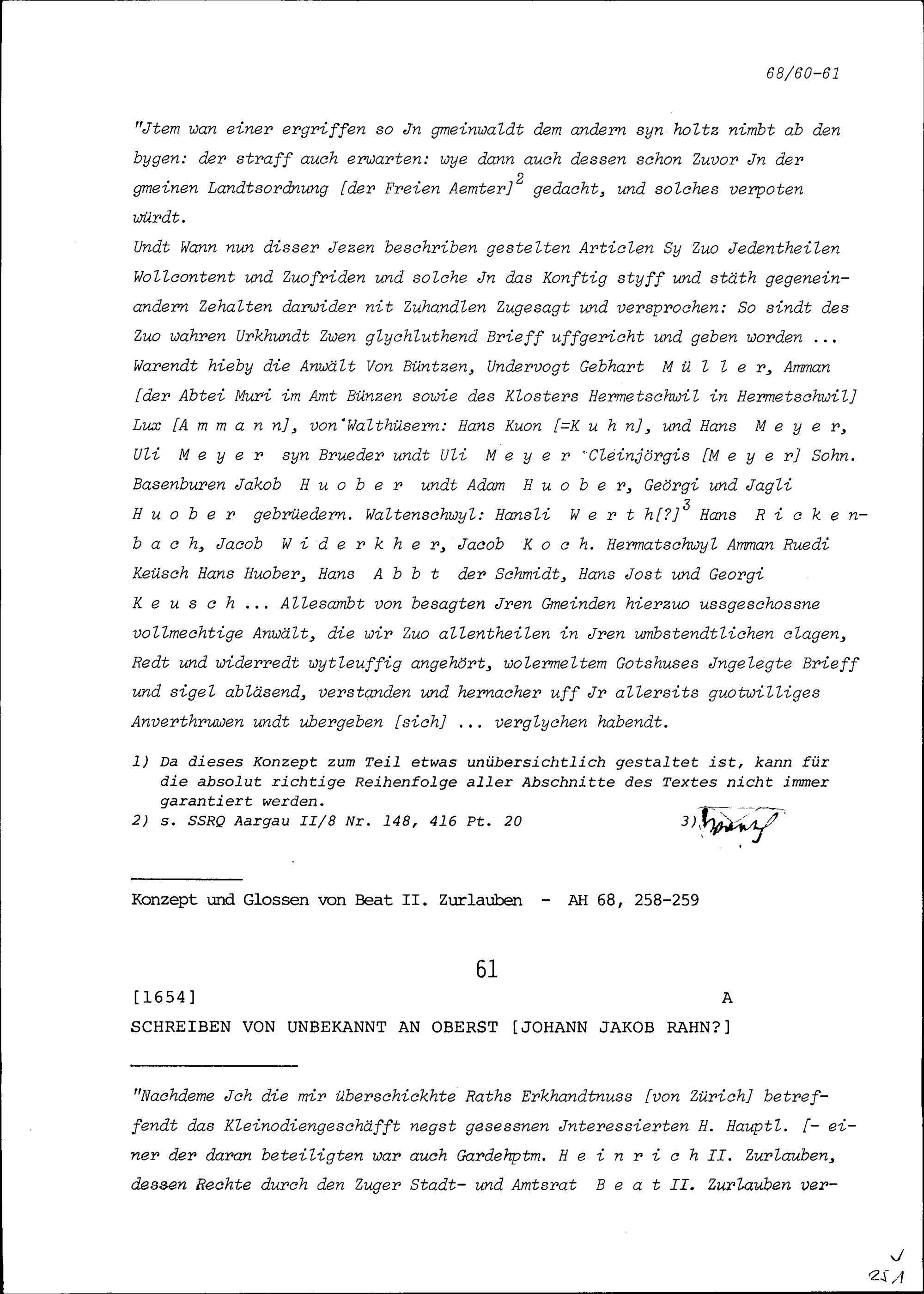 Schreiben von Unbekannt an Johann Jakob Rahn, Oberst