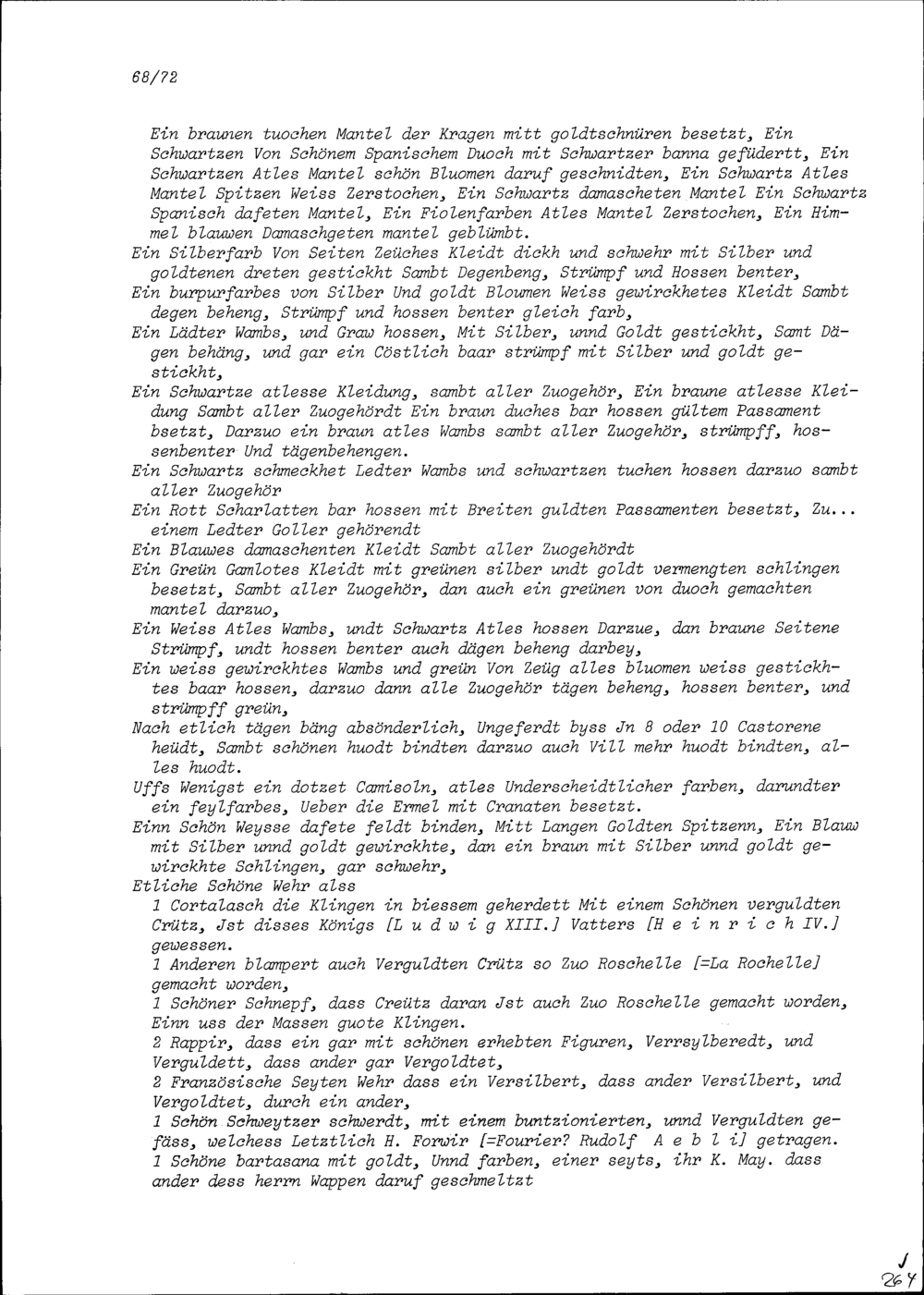 Inventar der Hinterlassenschaft von Franz Zurlauben, Gardehauptmann
