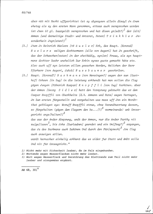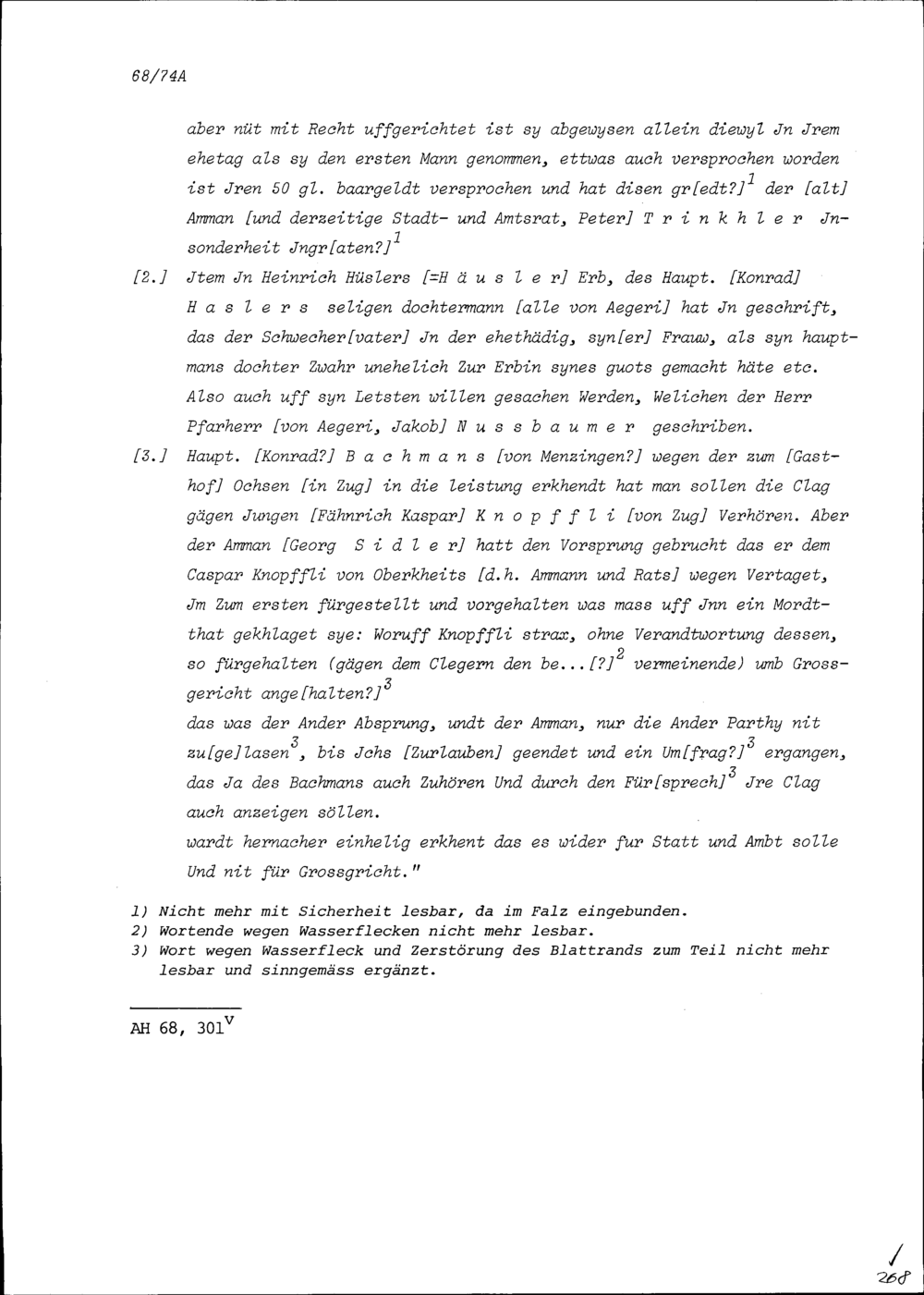 Notiz von Beat II. Zurlauben, Stadt- und Amtrat Zug, über die Sitzung des Stadt- und Amtrats vom 30. Juni 1651