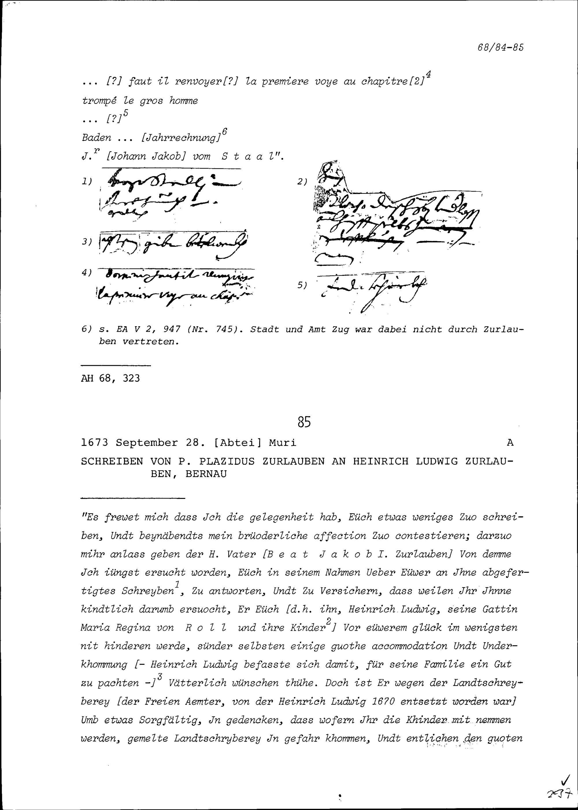 Schreiben von Plazidus Zurlauben, Konventuale, an Heinrich Ludwig Zurlauben, Ber...