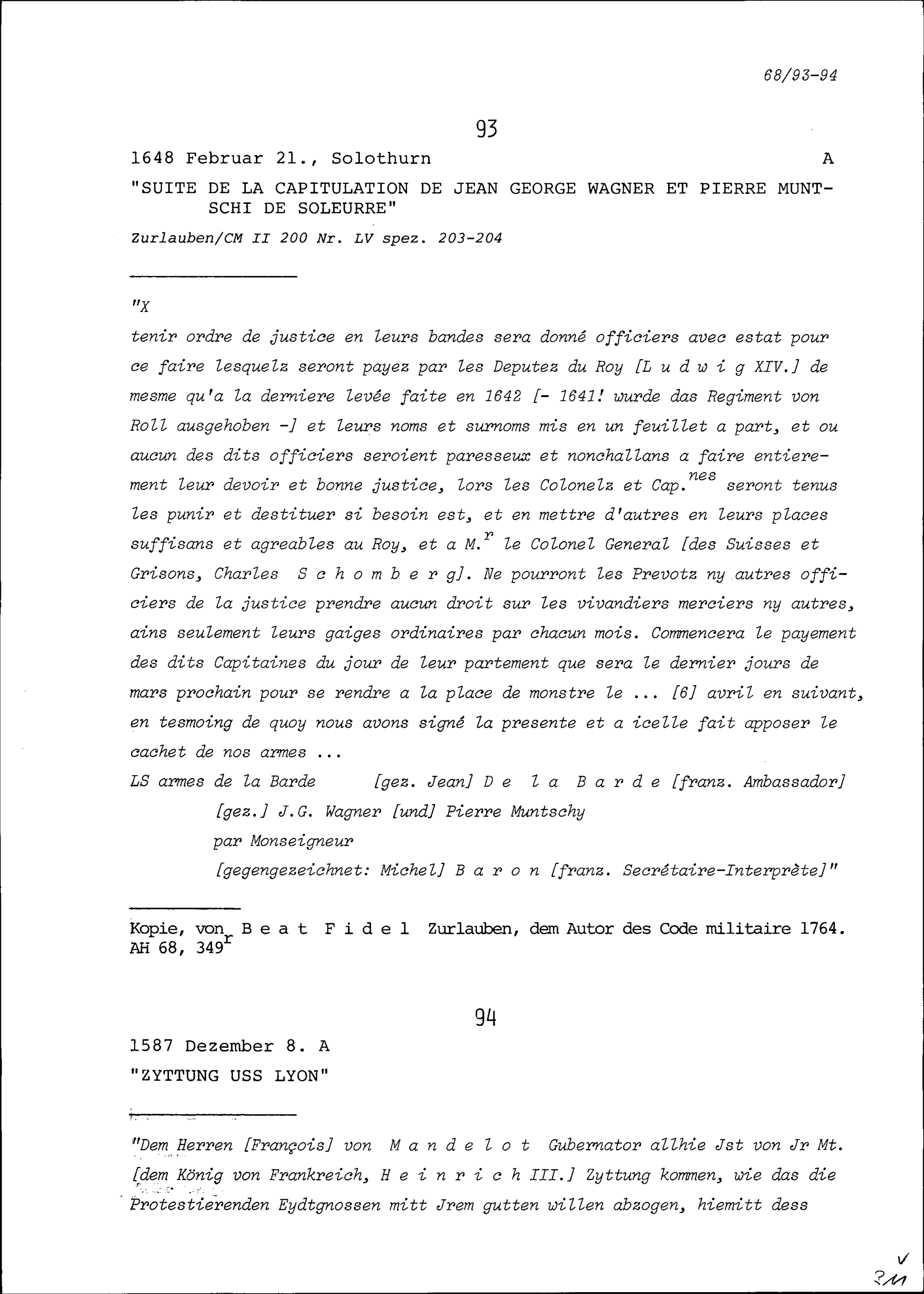 Fortsetzung der Kapitulation Jean George Wagner und Pierre Muntschi von Solothurn