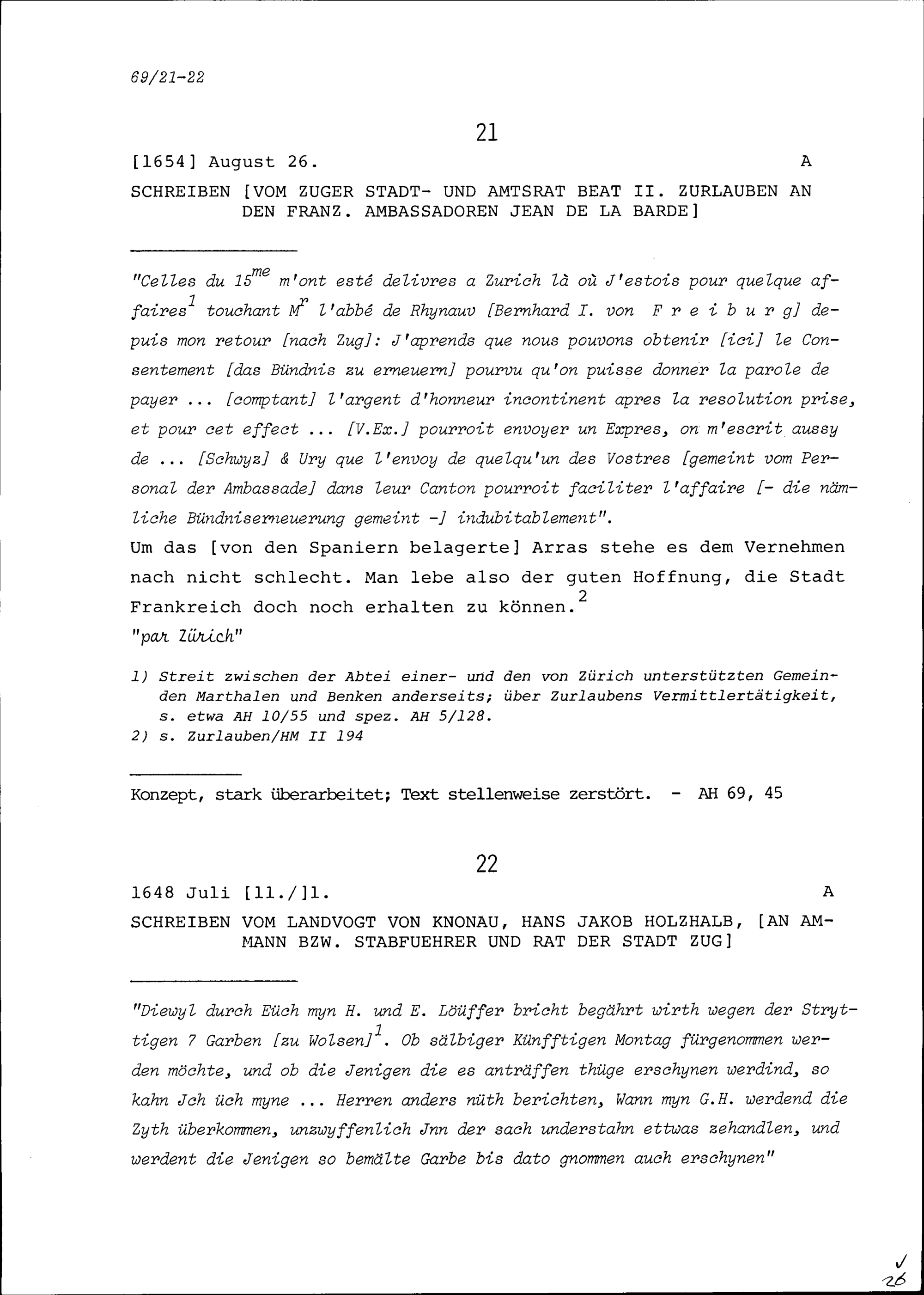 Schreiben von Beat II. Zurlauben, Stadt- und Amtrat Zug, an Jean de la Barde, Ambassador von Frankreich
