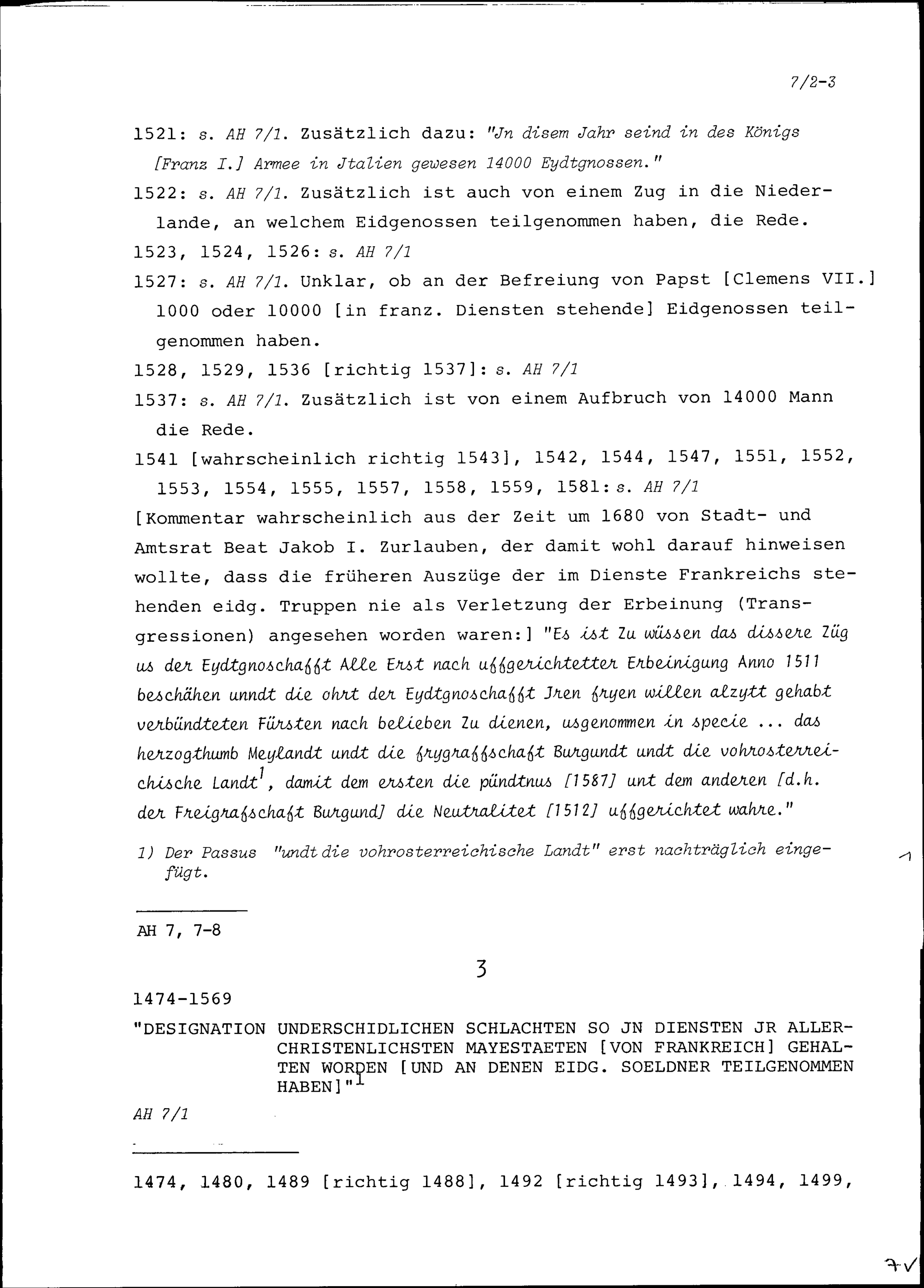 Beschrieb von Schlachten der Könige von Frankreich, an denen eidgenössische Söldner...