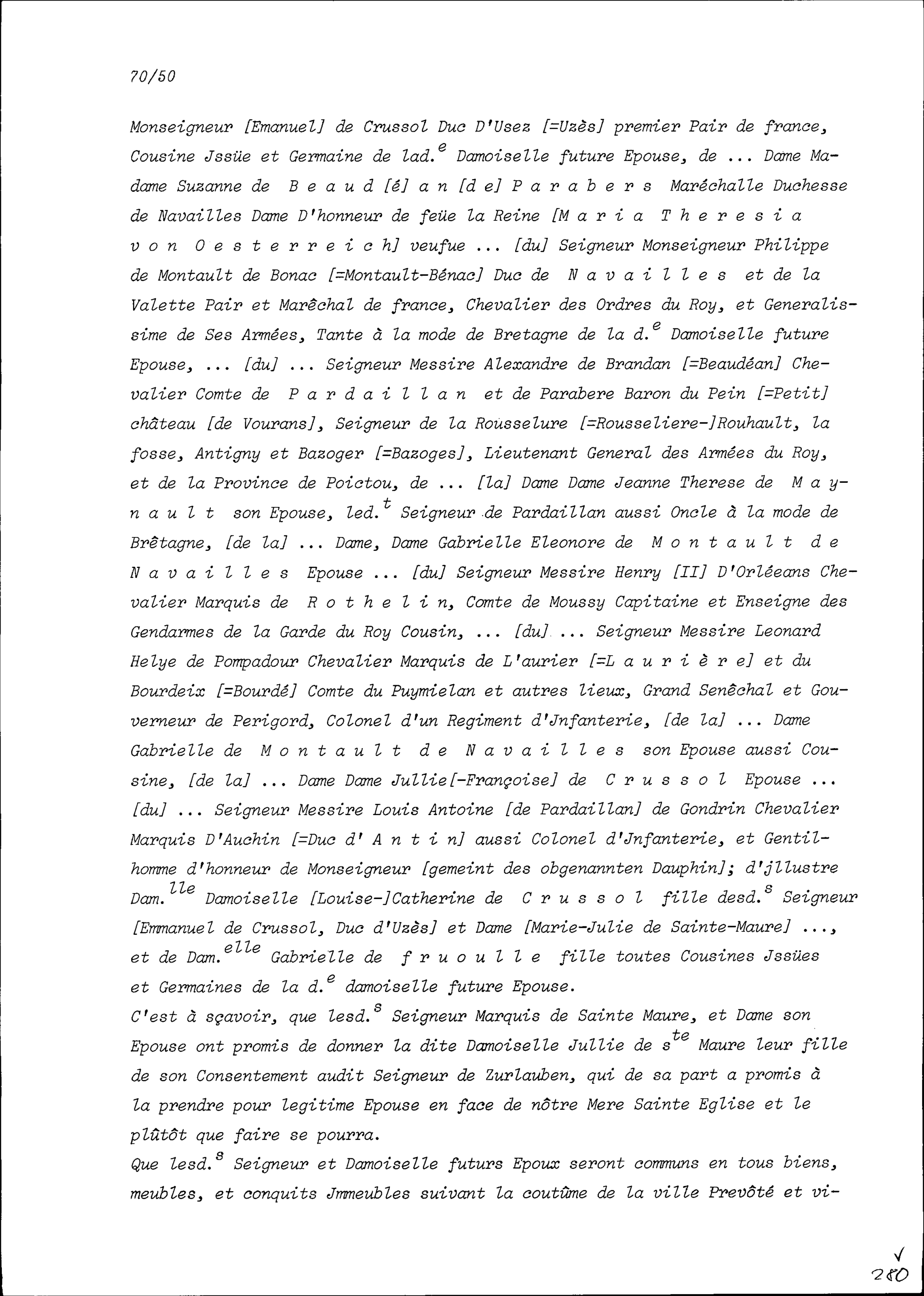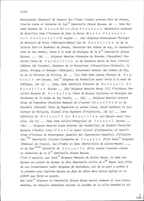 Ehevertrag zwischen Beat Jakob Zurlauben und Julie Marquise de Sainte Maure