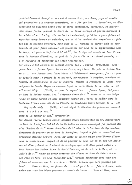 Ehevertrag zwischen Beat Jakob Zurlauben und Julie Marquise de Sainte Maure
