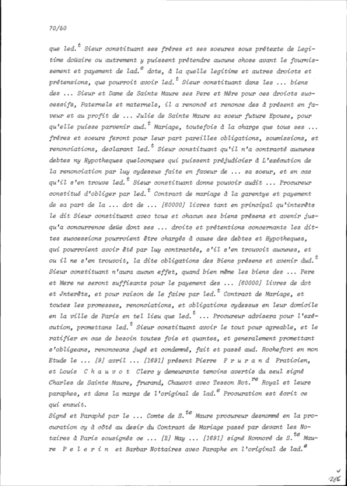 Ehevertrag zwischen Beat Jakob Zurlauben und Julie Marquise de Sainte Maure