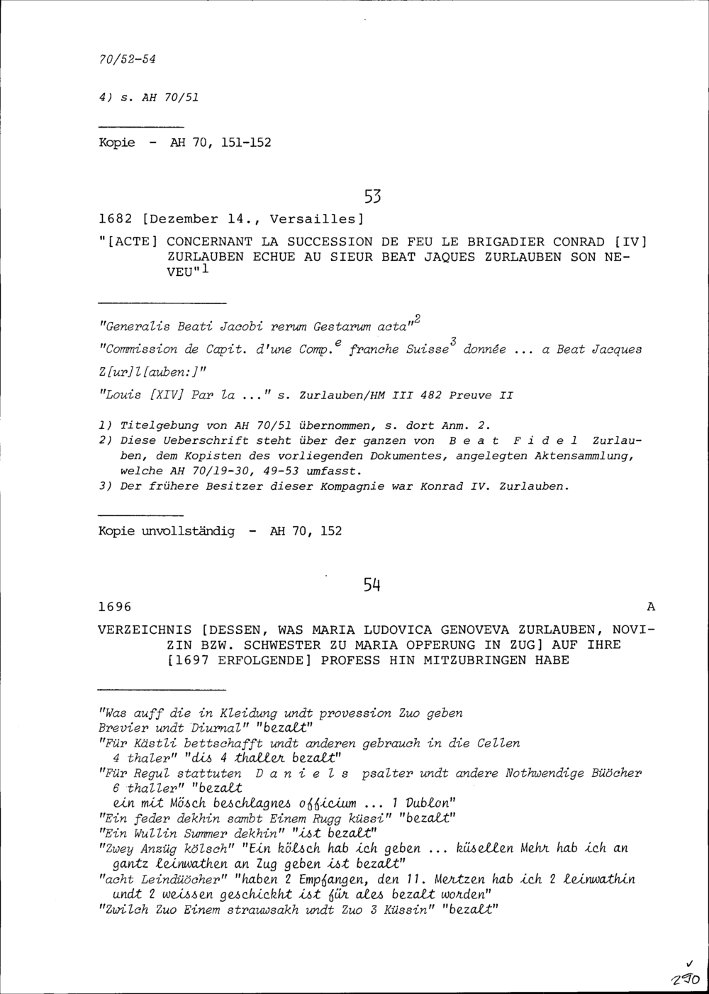 Schreiben betreffend die Nachfolge von Konrad IV. Zurlauben, Brigadier, durch Neffe...