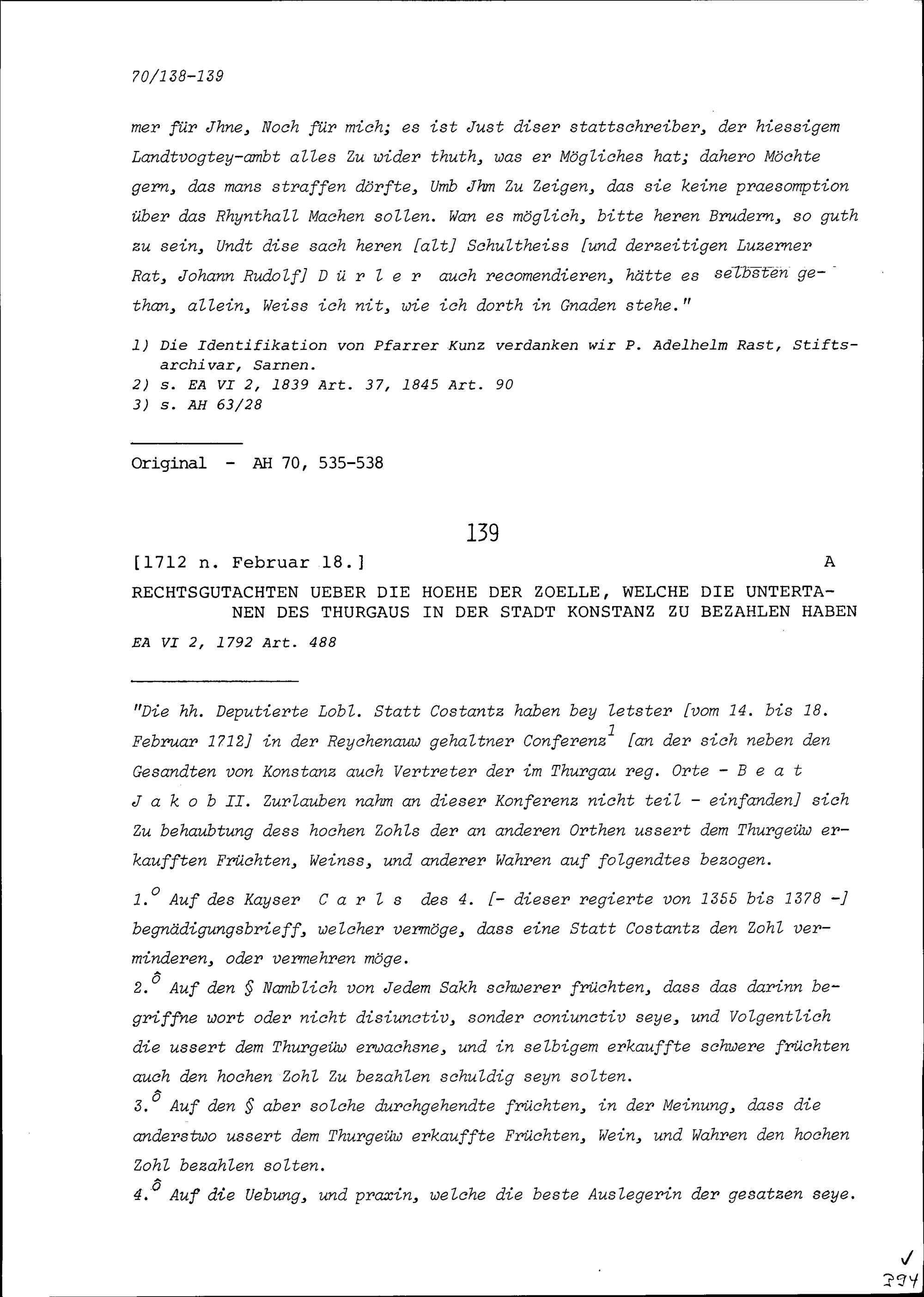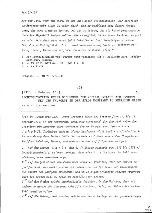 Rechtsgutachten über die Höhe der Zölle, welche die Untertanen des Thurgaus in der Stadt Konstanz zu bezahlen haben