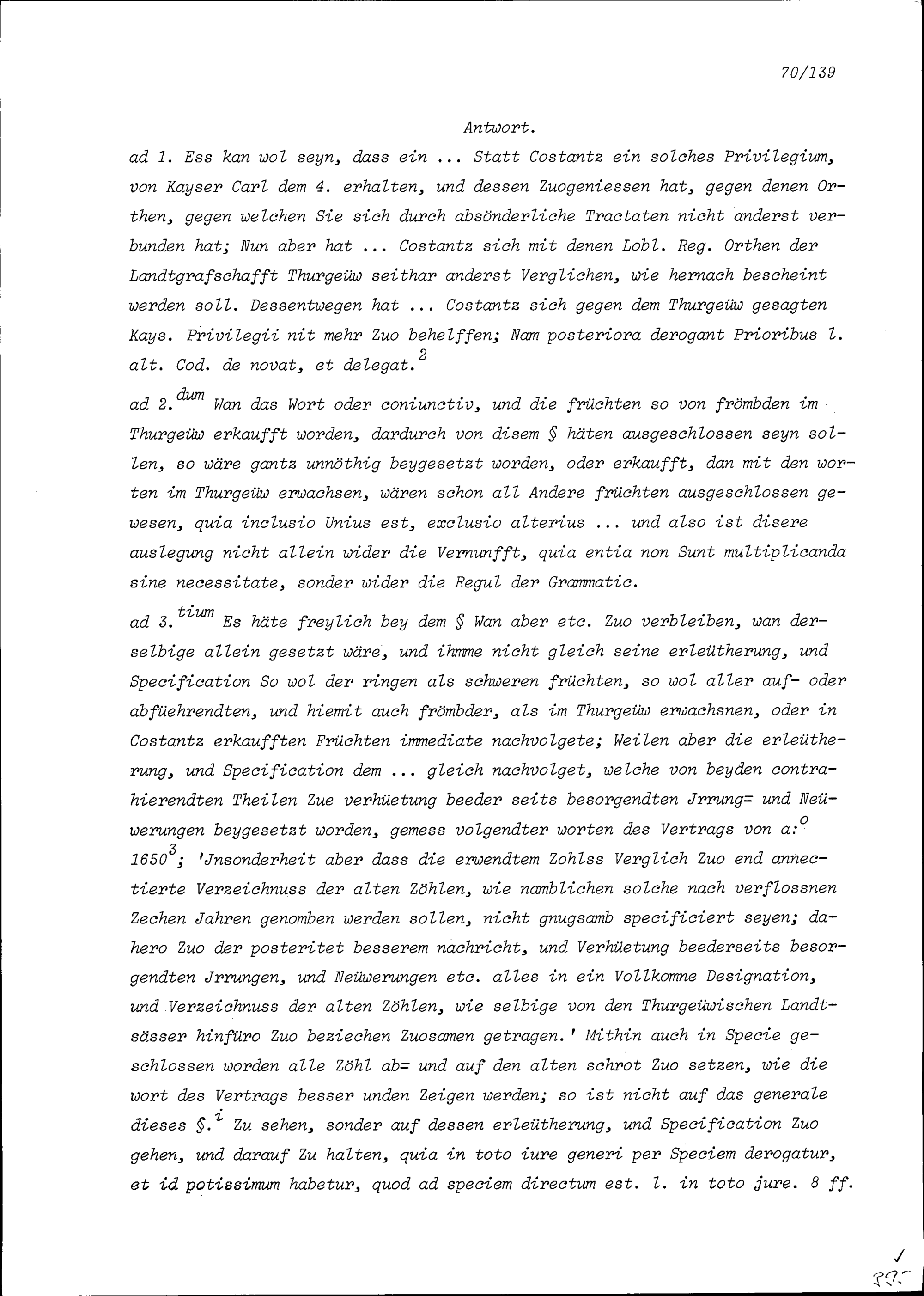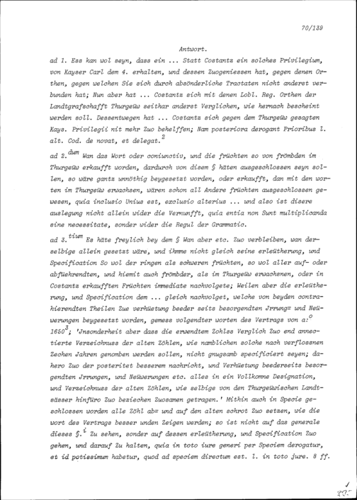 Rechtsgutachten über die Höhe der Zölle, welche die Untertanen des Thurgaus in der Stadt Konstanz zu bezahlen haben
