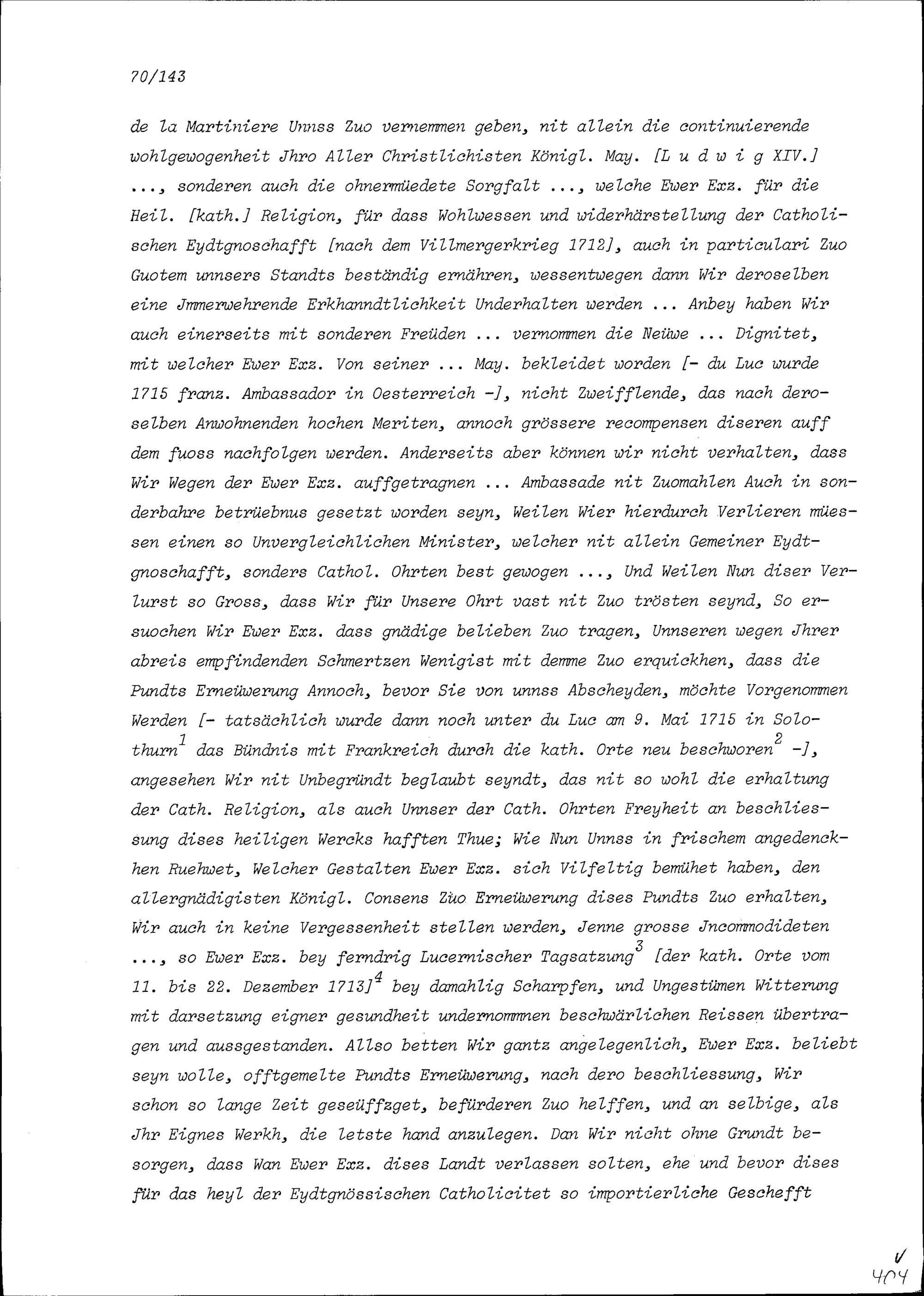 Schreiben des Ammanns und Rats von Stadt und Amt Zug an François-Charles de Vintimille, Graf du Luc, Ambassador von Frankreich, Vicomte von Marseille, auf dem Friedenskongress in Baden