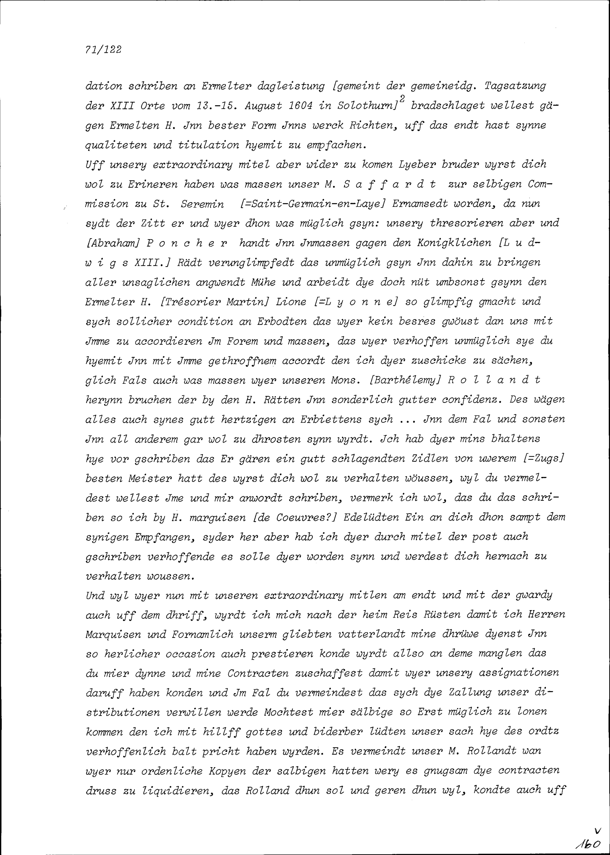 Schreiben von Heinrich Reding, Gardehauptmann, an Konrad III. Zurlauben, Altammann, Stadt- und Amtrat und Gardehauptmann, Zug