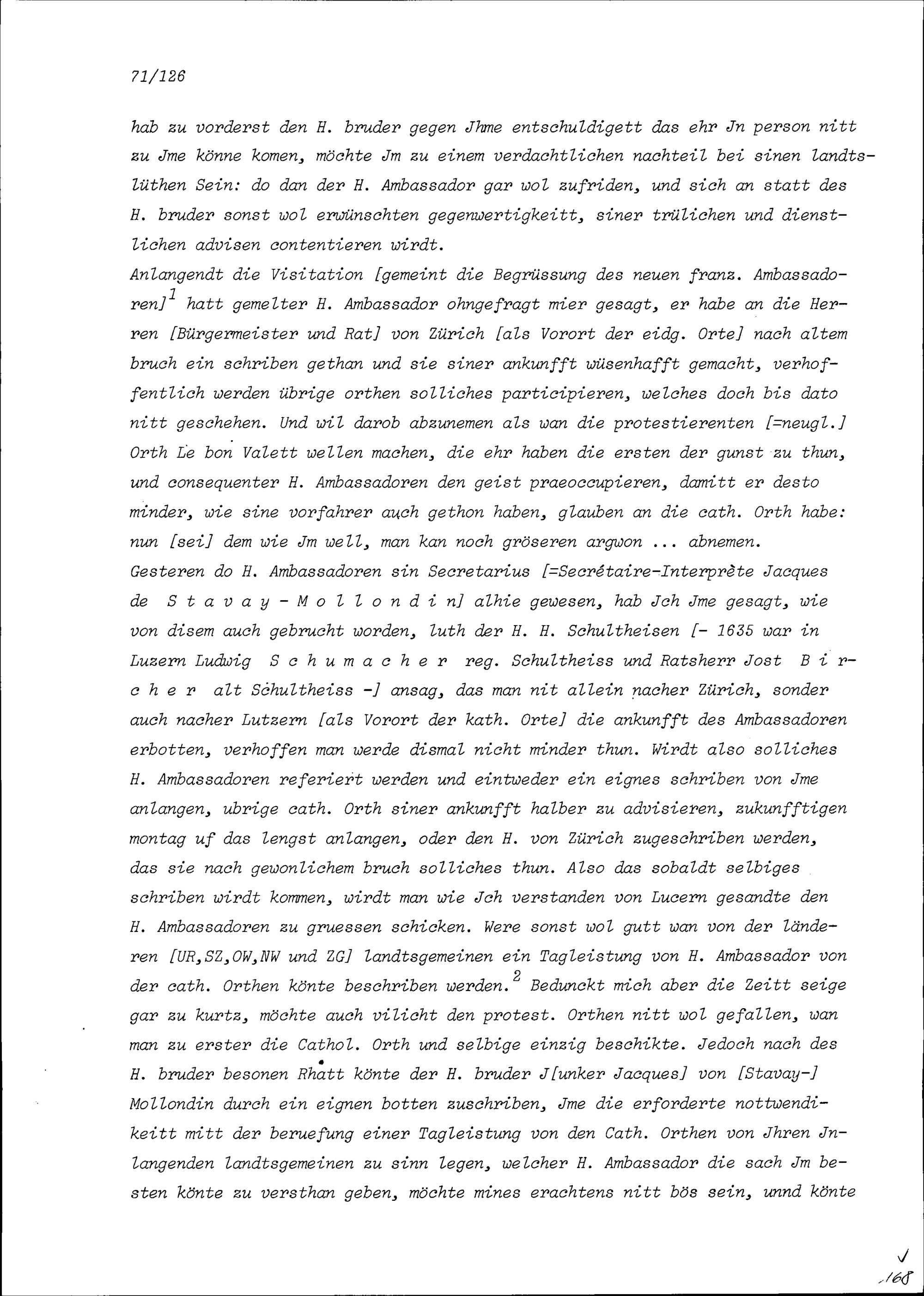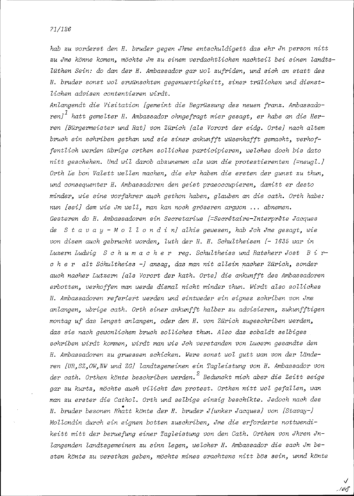 Schreiben von Alfons von Sonnenberg, Gardehauptmann, an Beat II. Zurlauben, Ammann, Zug