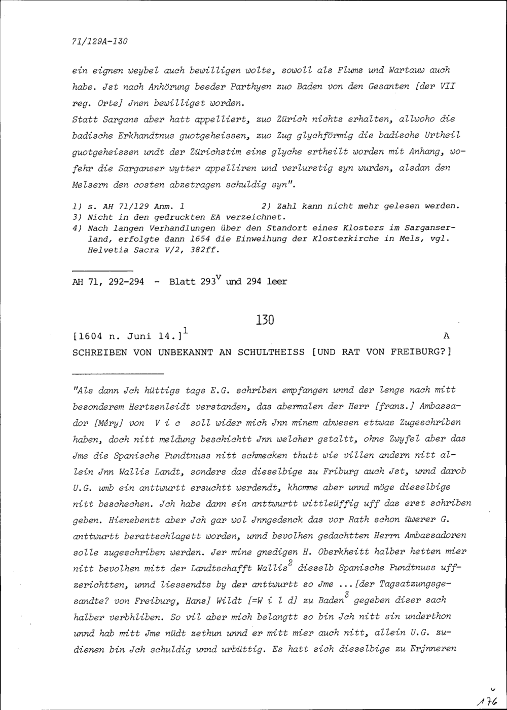 Schreiben von Unbekannt an Schultheiss und Rat von Freiburg