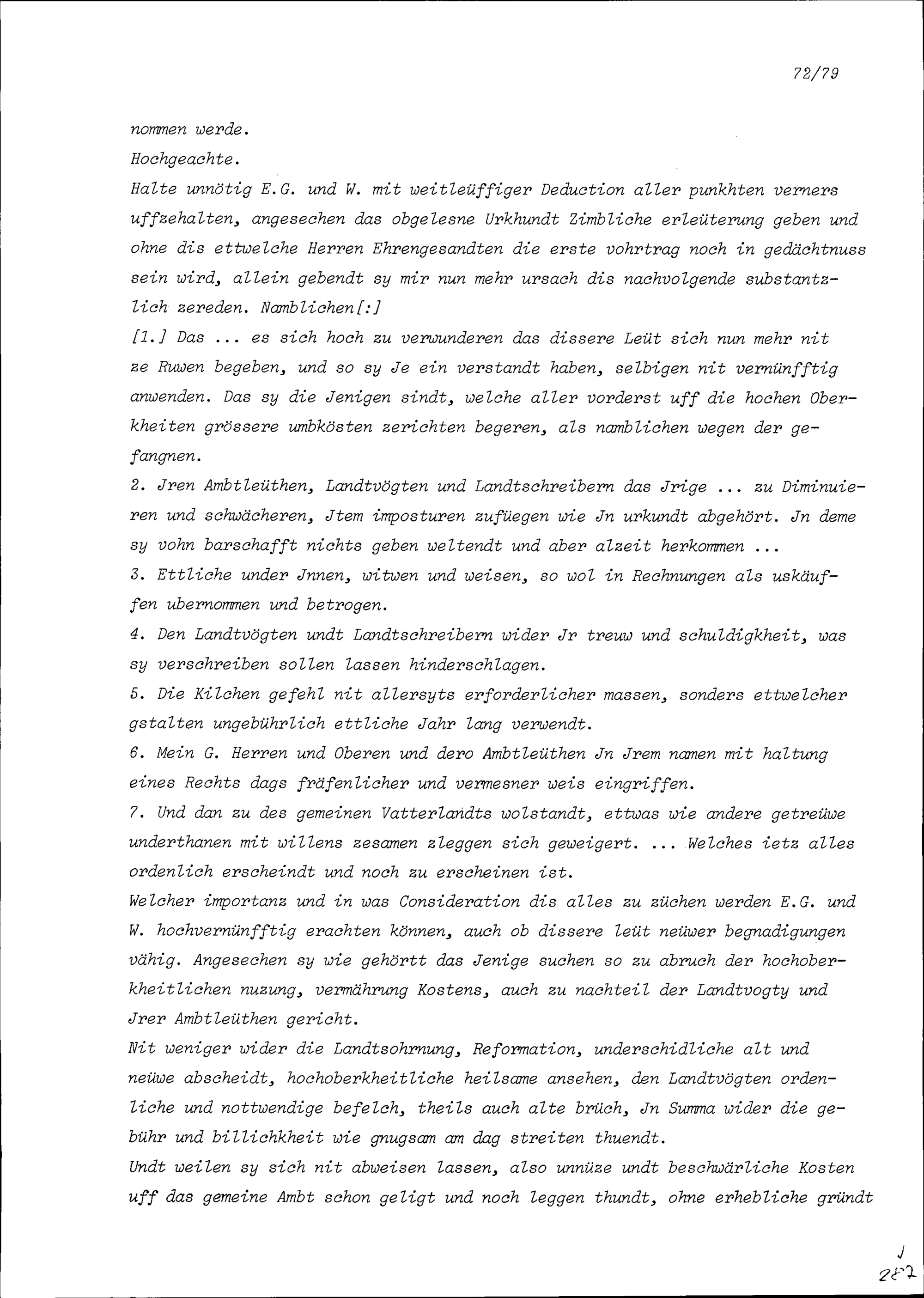 Vortrag von Beat Jakob I. Zurlauben, Landschreiber der Freien Ämter, vor den Tagsatzungsgesandten der in den Freien Ämter regierenden Orten in Sachen Streit zwischen ihm und dem Amt Hitzkirch
