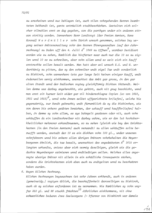 Vortrag von Beat Jakob I. Zurlauben, Landschreiber der Freien Ämter, vor den Tagsatzungsgesandten der in den Freien Ämter regierenden Orten in Sachen Streit zwischen ihm und dem Amt Hitzkirch