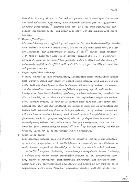 Vortrag von Beat Jakob I. Zurlauben, Landschreiber der Freien Ämter, vor den Tagsatzungsgesandten der in den Freien Ämter regierenden Orten in Sachen Streit zwischen ihm und dem Amt Hitzkirch