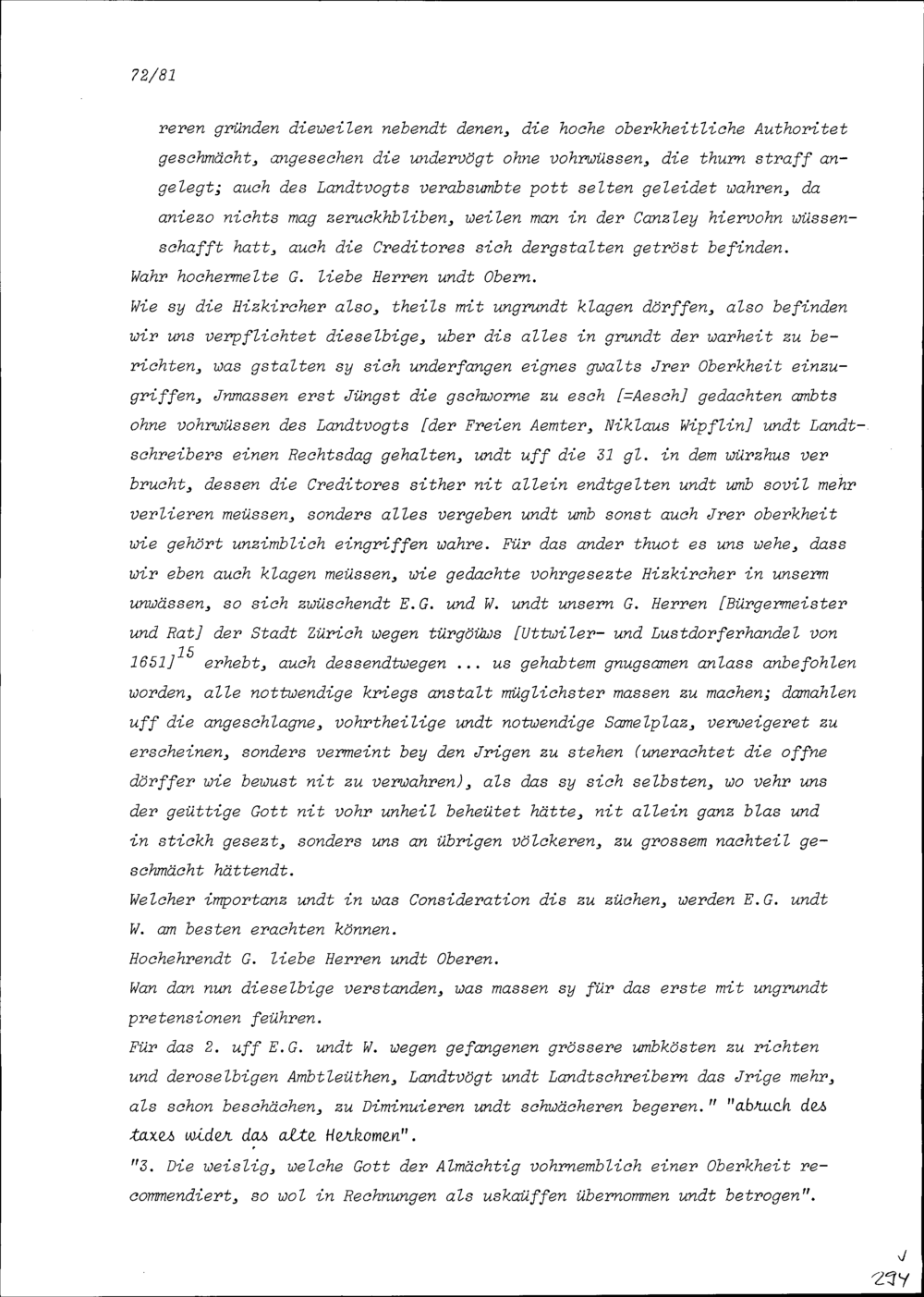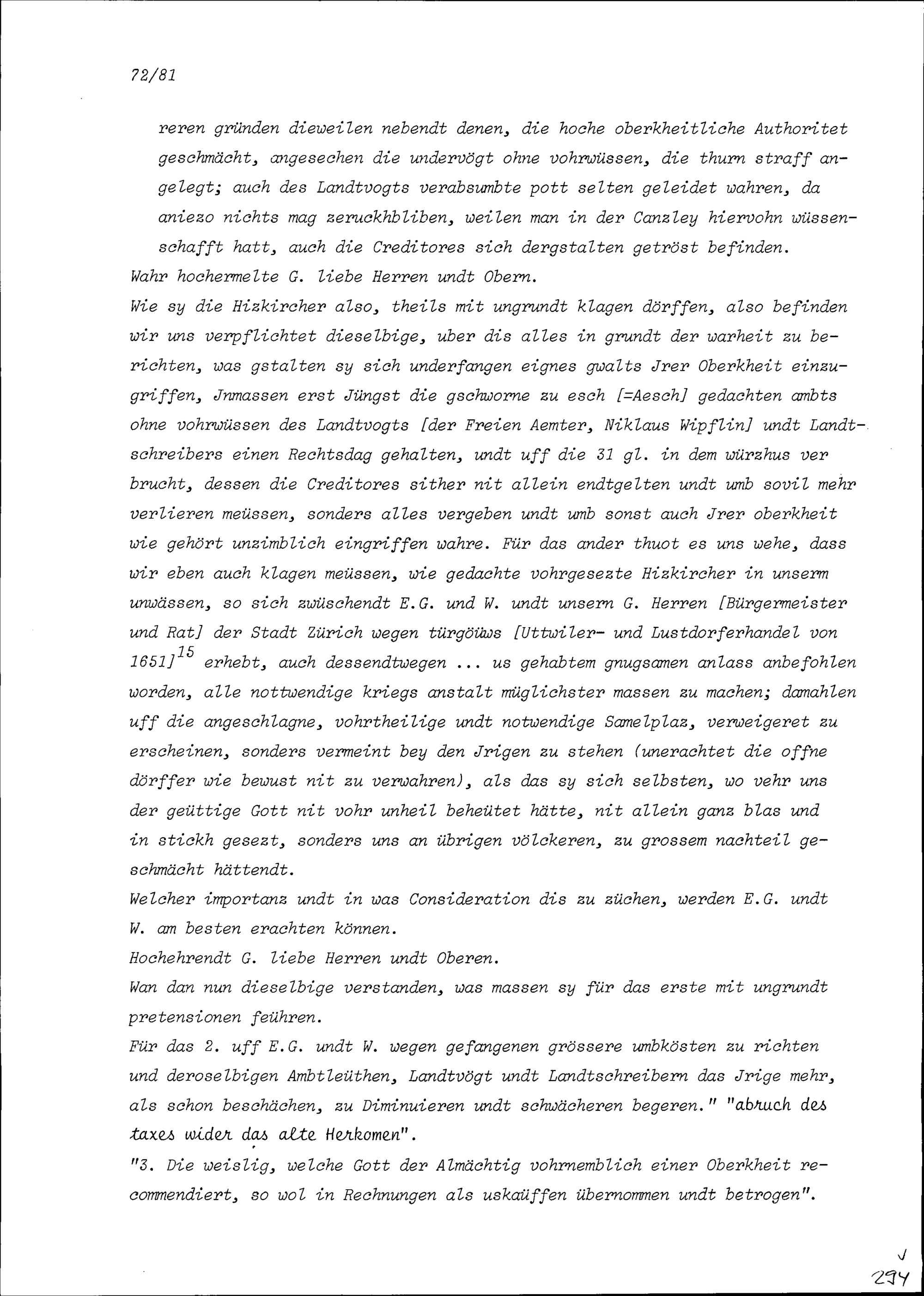 Vortrag von Beat Jakob I. Zurlauben, Landschreiber der Freien Ämter, vor den Tagsatzungsgesandten der in den Freien Ämter regierenden Orten in Sachen Streit zwischen ihm und dem Amt Hitzkirch