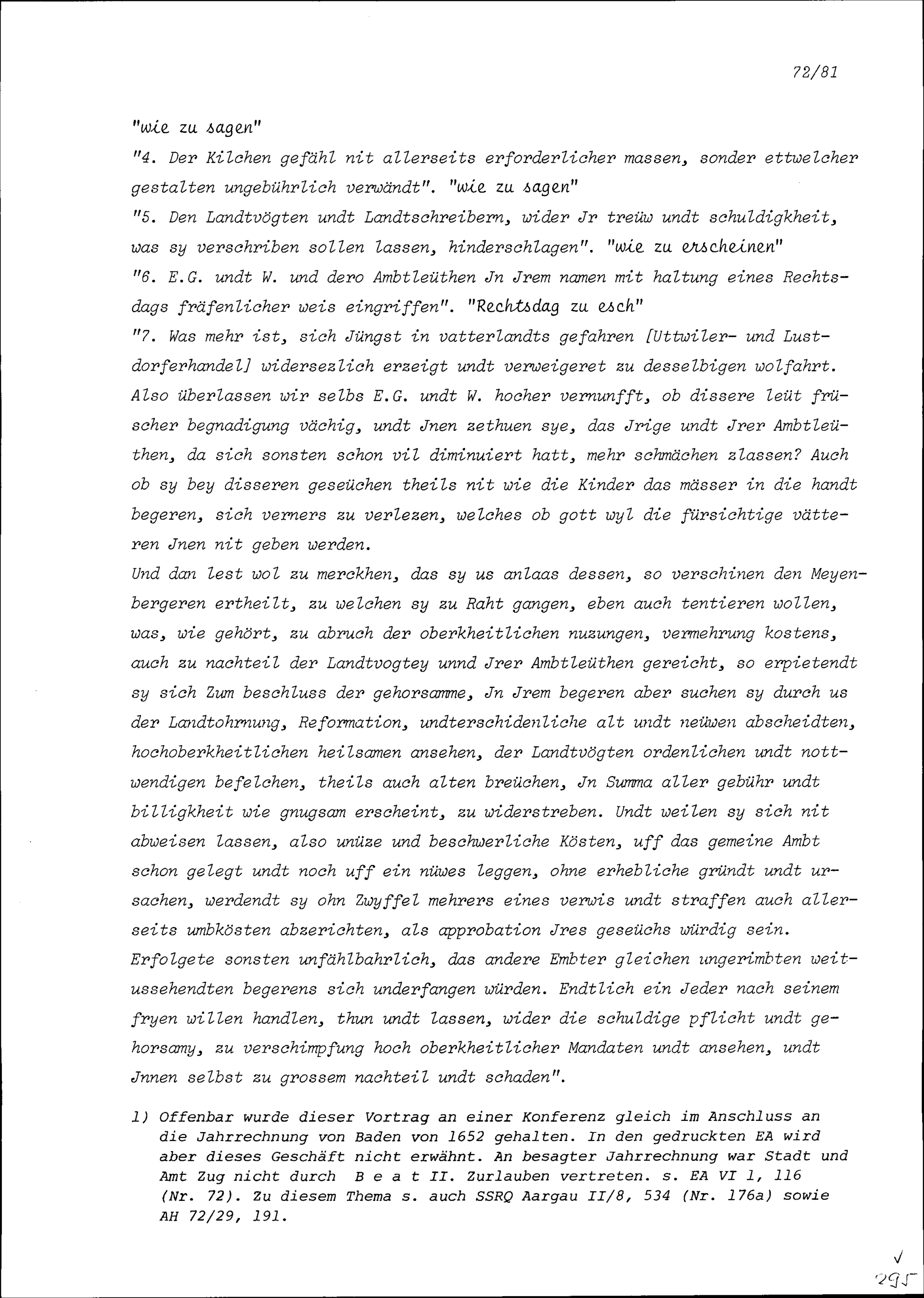 Vortrag von Beat Jakob I. Zurlauben, Landschreiber der Freien Ämter, vor den Tagsatzungsgesandten...