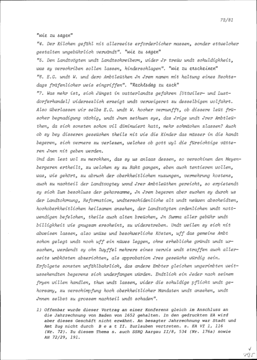 Vortrag von Beat Jakob I. Zurlauben, Landschreiber der Freien Ämter, vor den Tagsatzungsgesandten der in den Freien Ämter regierenden Orten in Sachen Streit zwischen ihm und dem Amt Hitzkirch