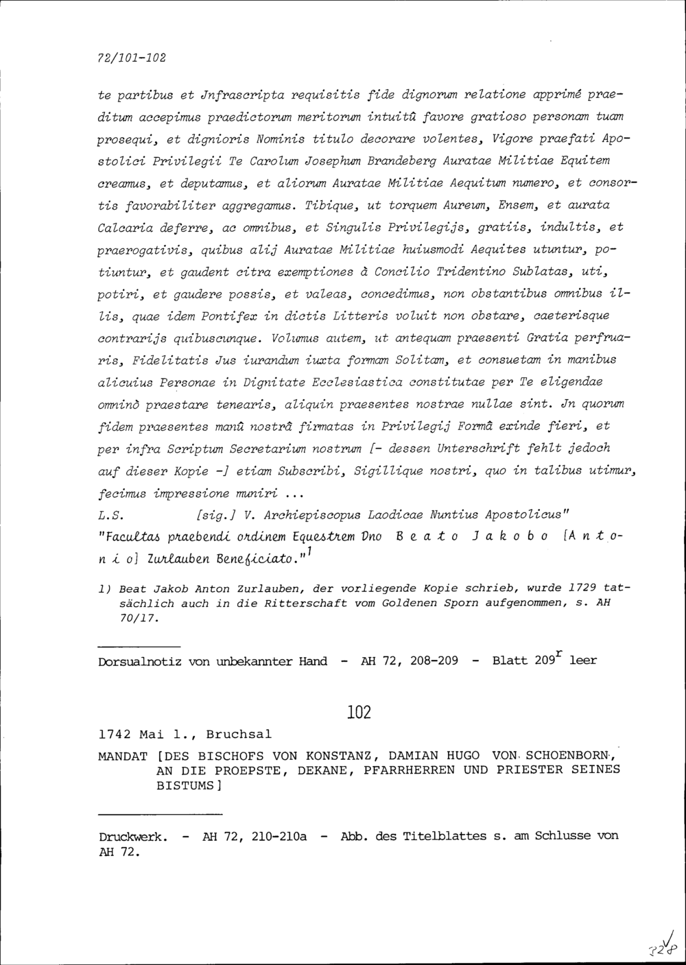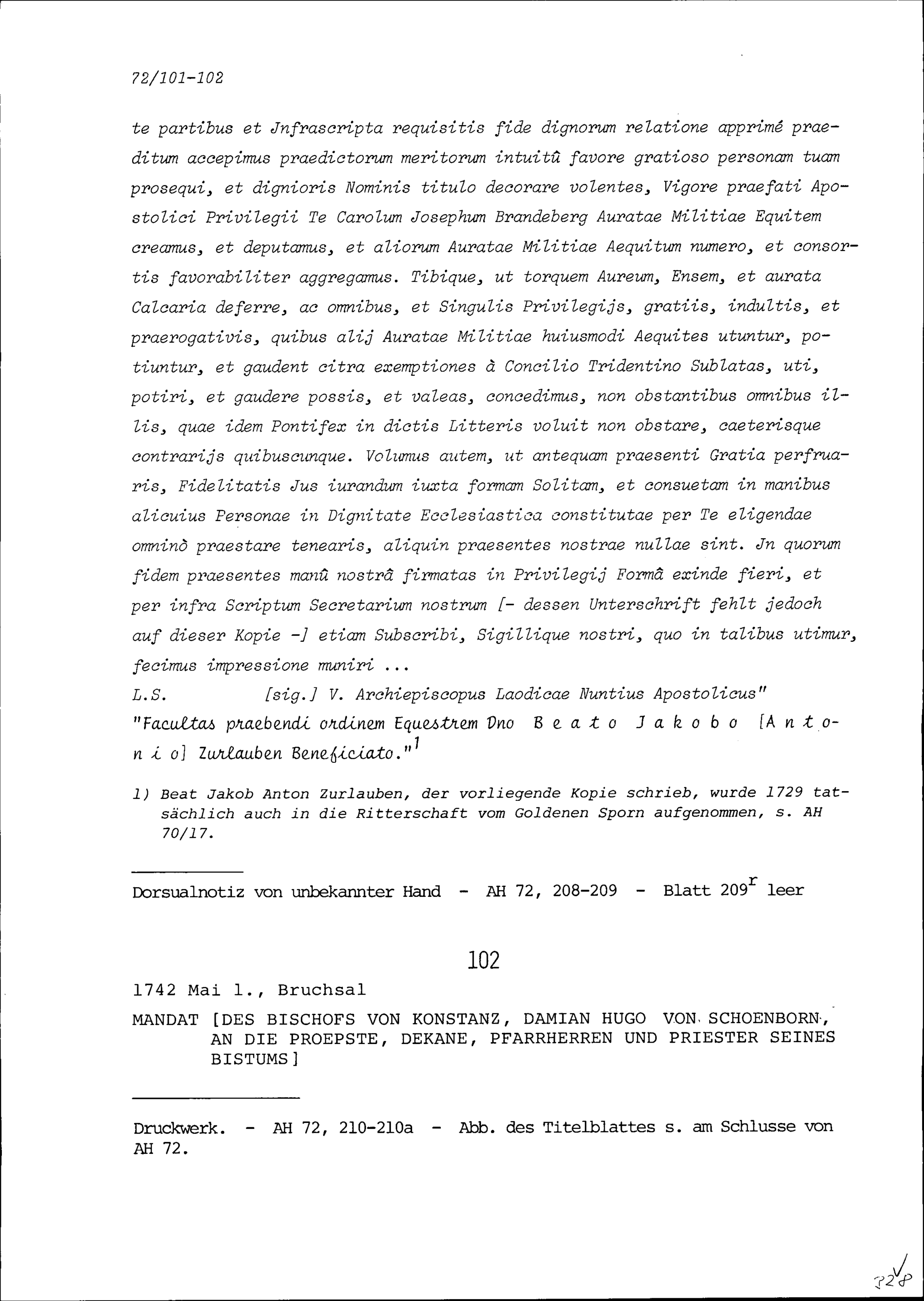 Druck: Mandat von Damian Hugo von Schönborn, Bischofs von Konstanz, an die Pröpste, Dekane, Pfarrherren und Priester seines Bistums
