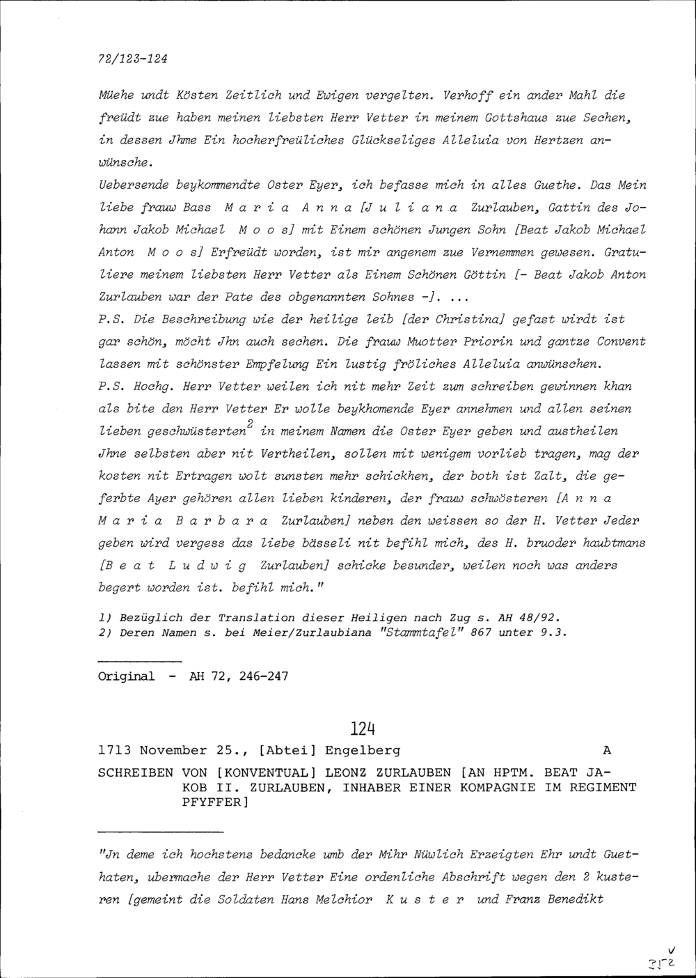 Schreiben von Leonz Zurlauben, Konventuale, an Beat Jakob II. Zurlauben, Hauptmann und Inhaber einer Kompanie im Regiment Pfyffer
