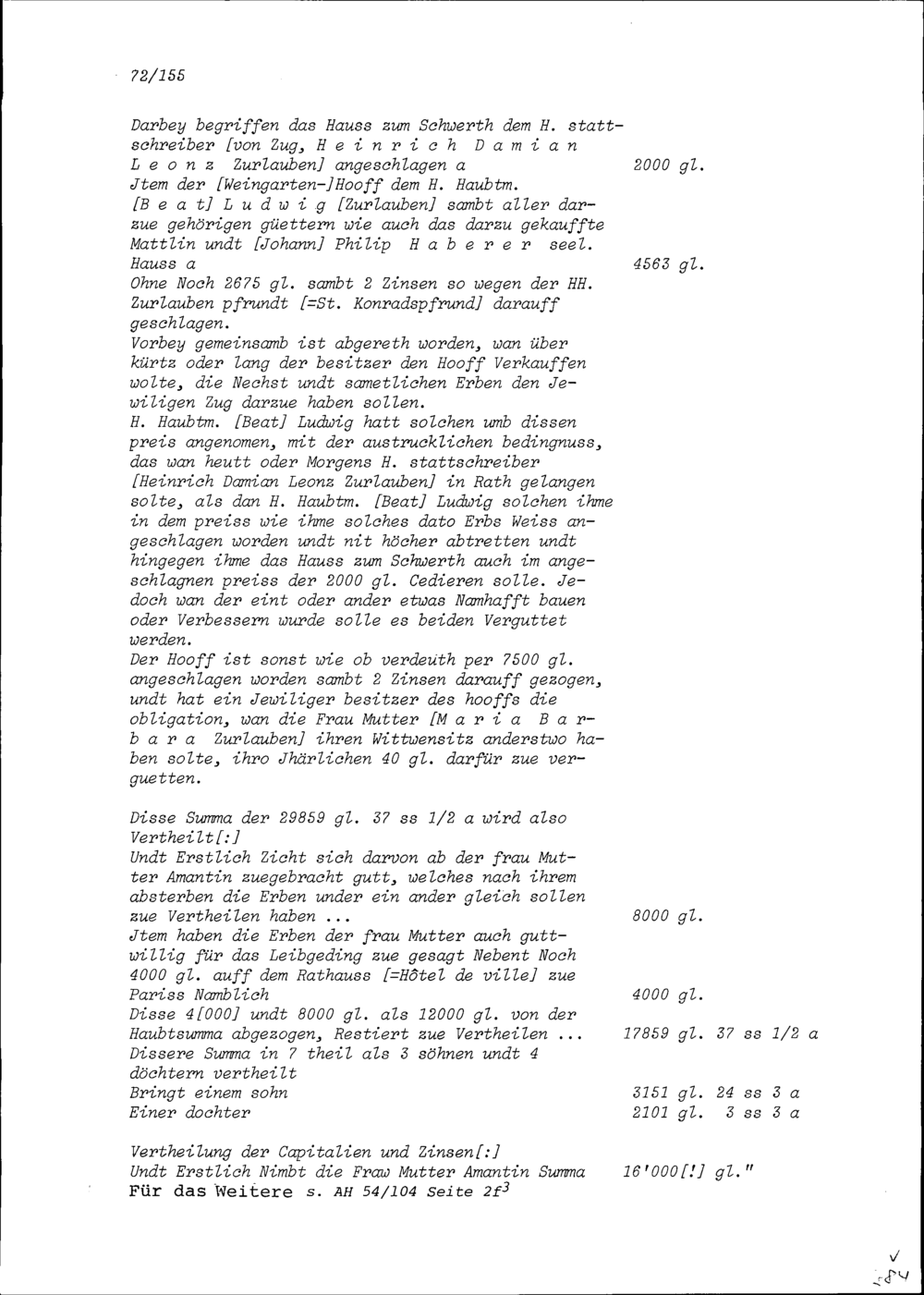 Inventar der Hinterlassenschaft von Beat Jakob II. Zurlauben