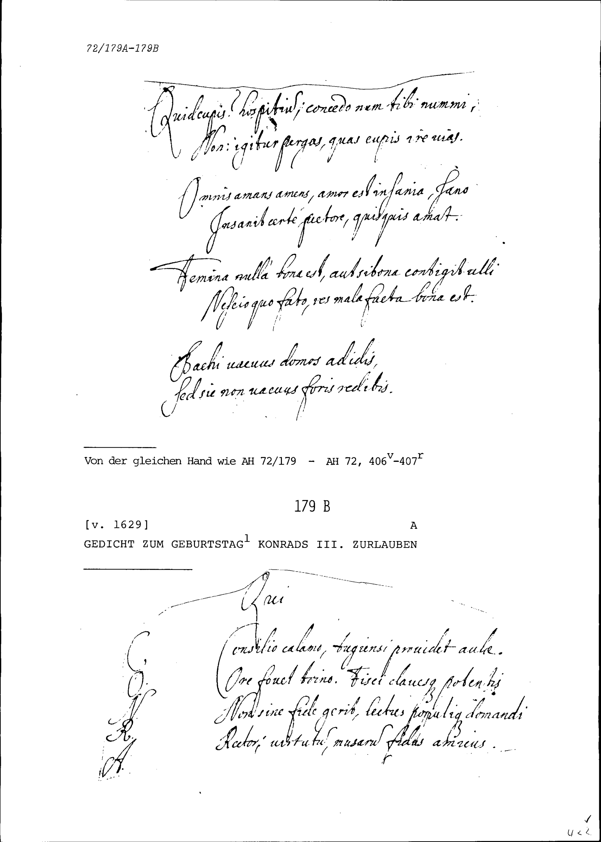 Gedicht in lateinischer Sprache zum Geburtstag von Konrad III. Zurlauben