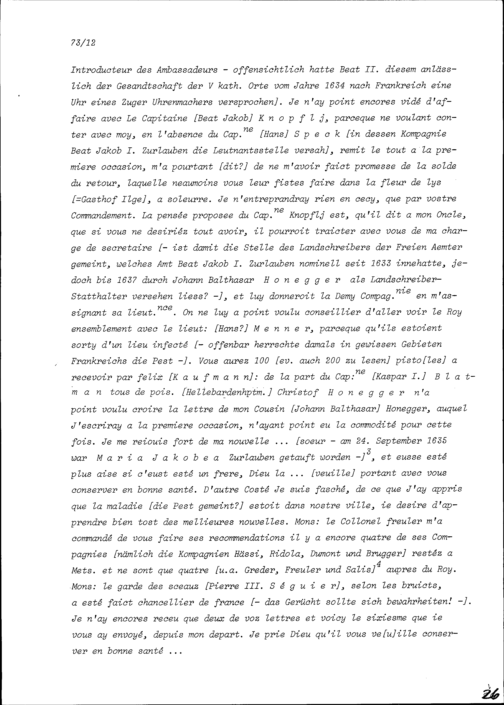Schreiben von Beat Jakob I. Zurlauben, Leutnant, an Beat II. Zurlauben, Altammann...
