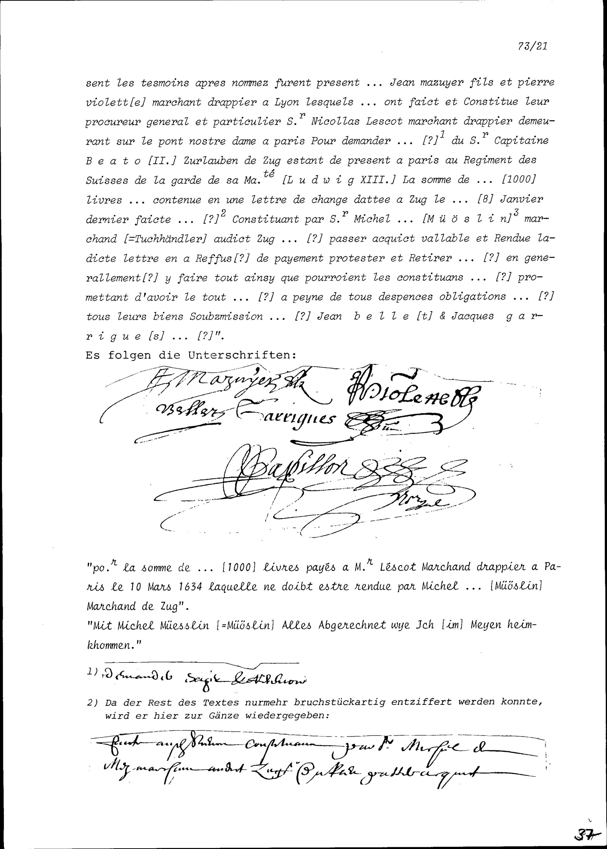 Vollmacht, ausgestellt von Jean Mazuyer, Tuchhändler, und Pierre Violette, für Nicolas Lescot, Tuchhändler in Paris