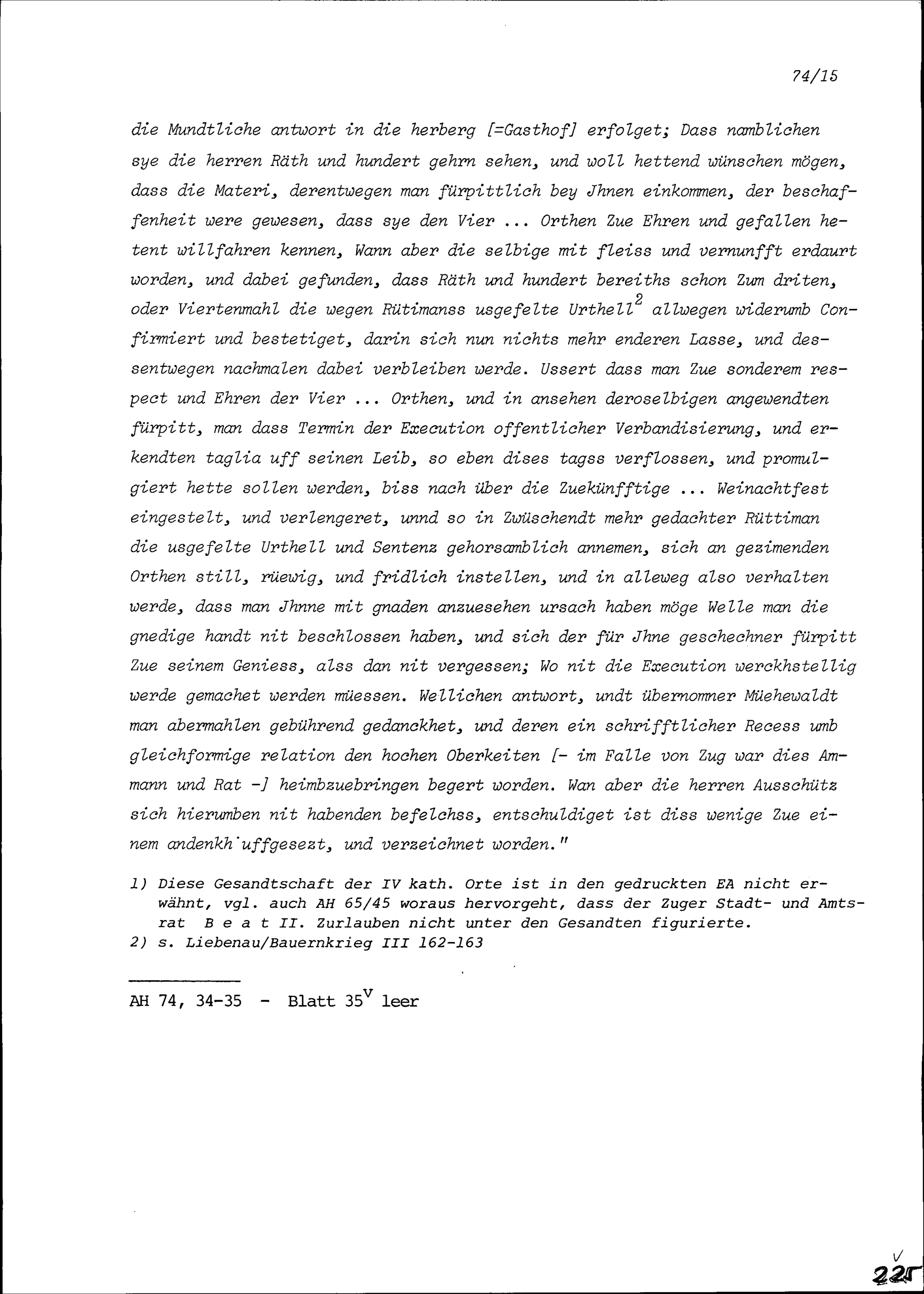 Antwort von Luzern betreffend die Vorkehrungen der Deputierten der Orte Uri, Schwyz Unterwalden und Zug wegen Melchior Rüttimann, Hauptmann, im Bauernkrieg 1653