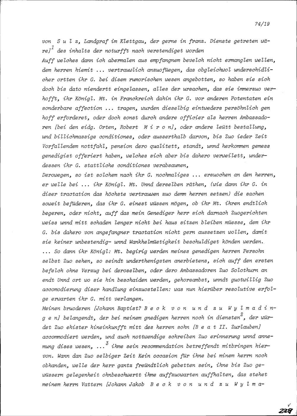 Schreiben von Johann Jakob Beck, von und zu Willmandingen, an Konrad III. Zurlauben, Altammann und Stadt- und Amtrat Zug, Paris