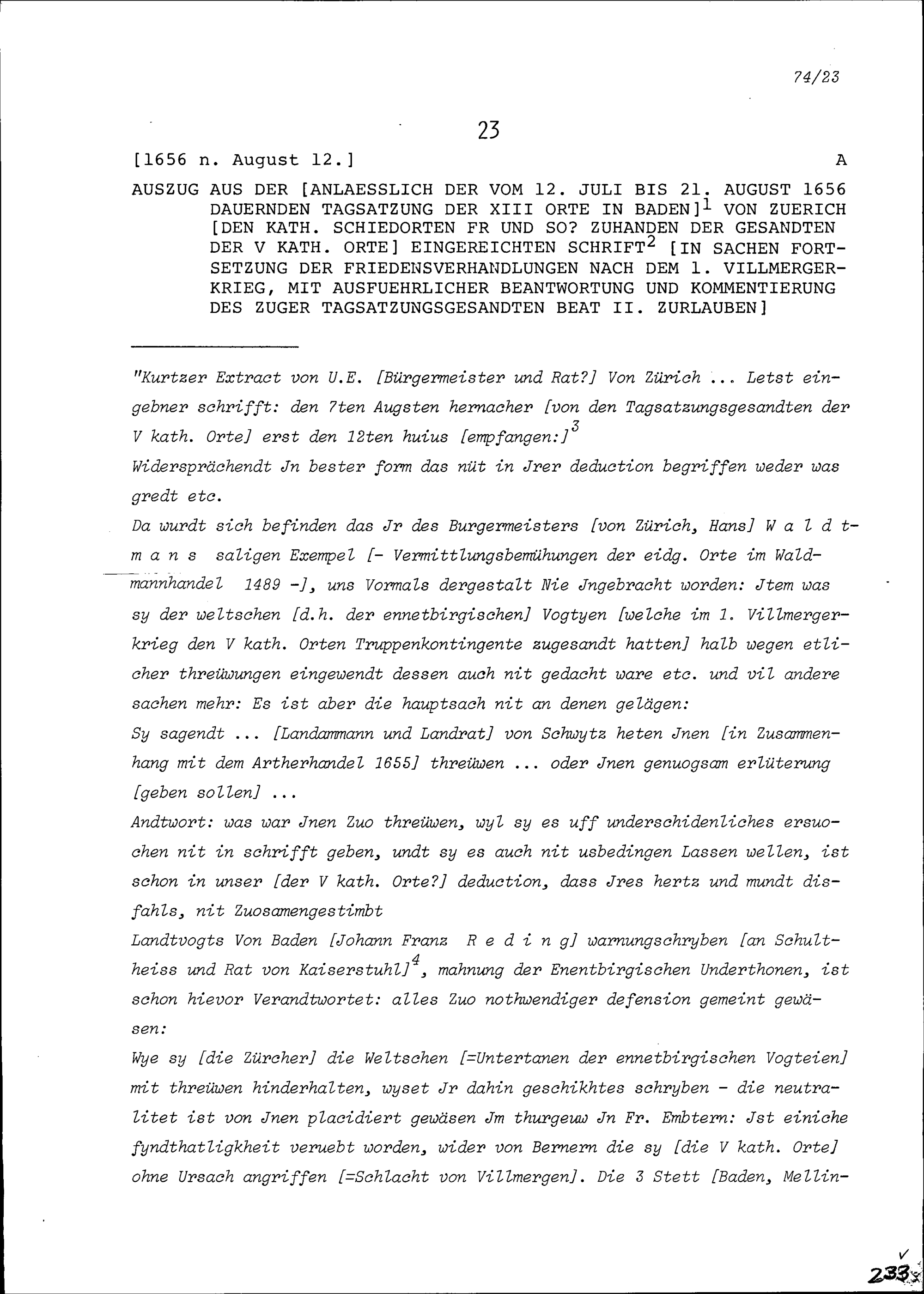 Schriften in Sachen Fortsetzung der Friedensverhandlungen nach dem Ersten Villmergerkrieg,...